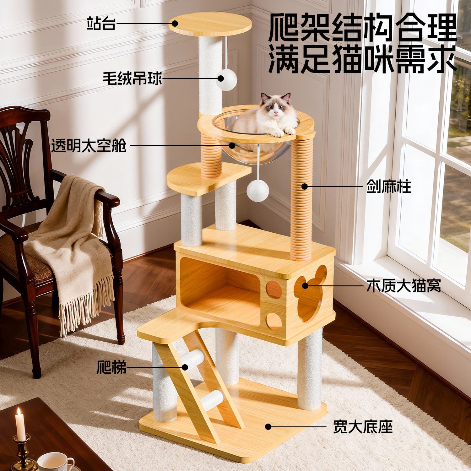 📚 猫爬架猫窝猫树一体大型通天柱木质猫架子太空舱跳台剑麻猫咪玩具