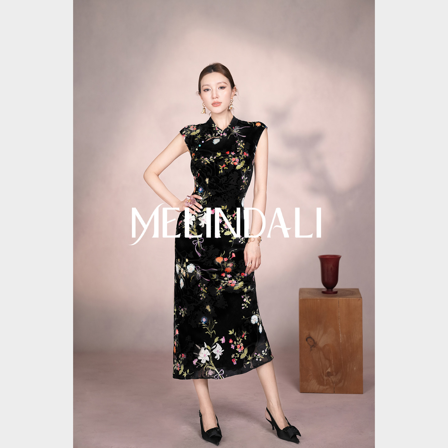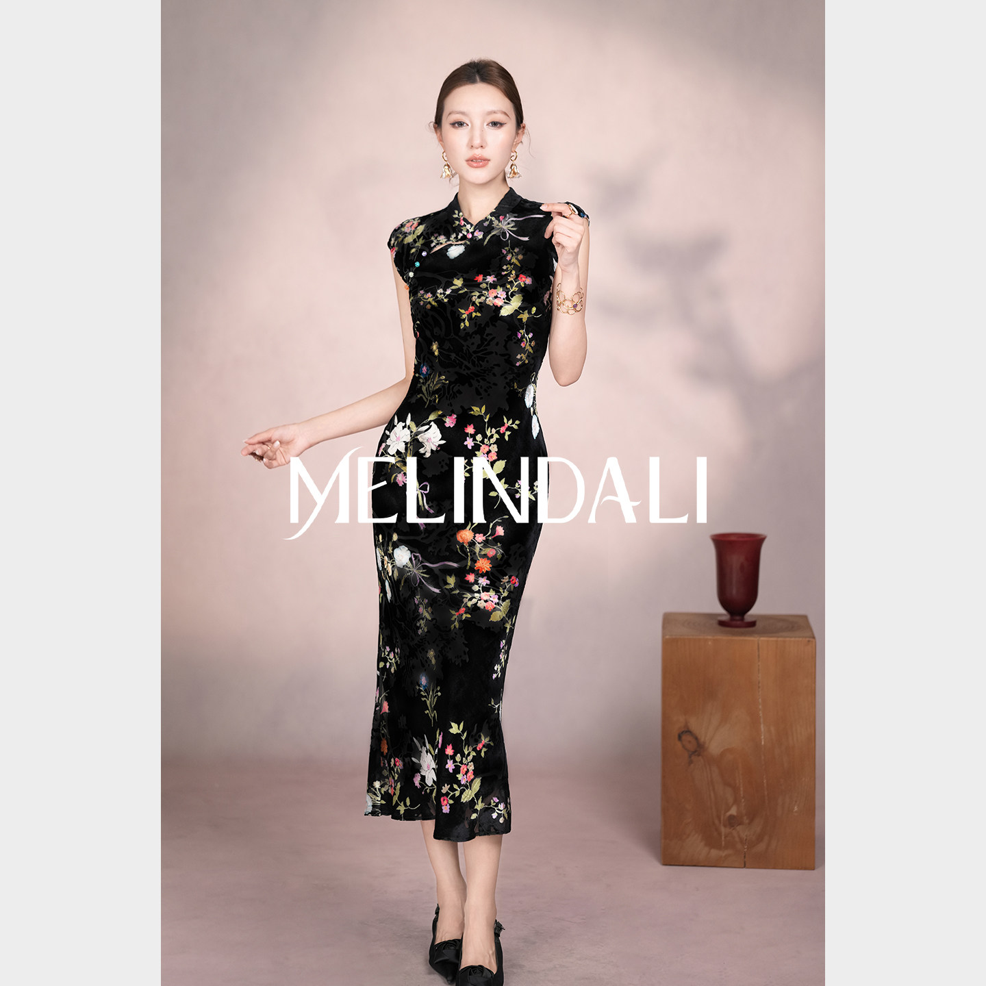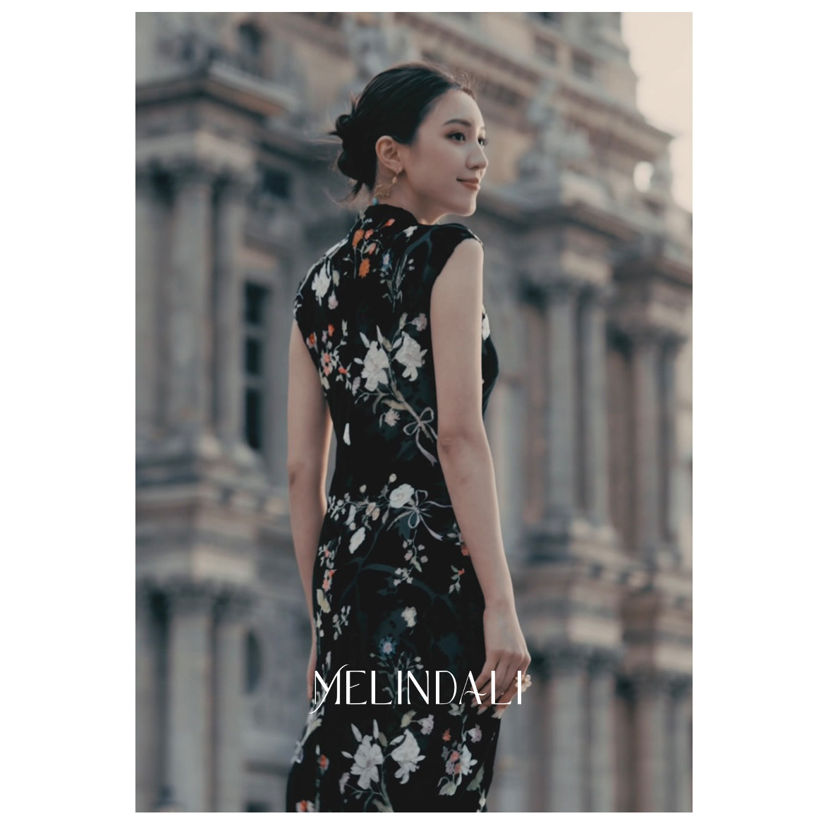 📚 MELINDA LI【卢浮】新中式100真丝丝绒印花斜裁改良旗袍连衣裙