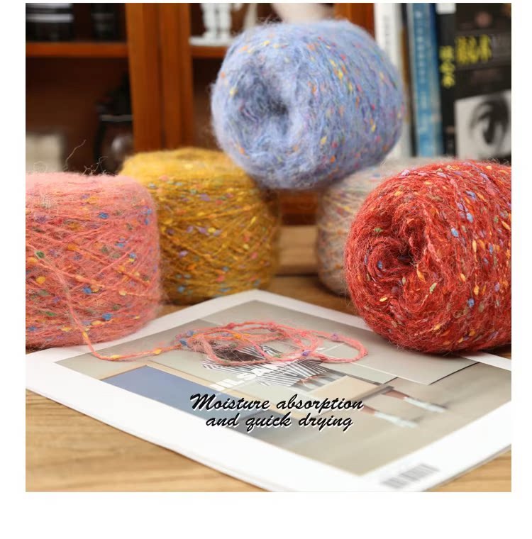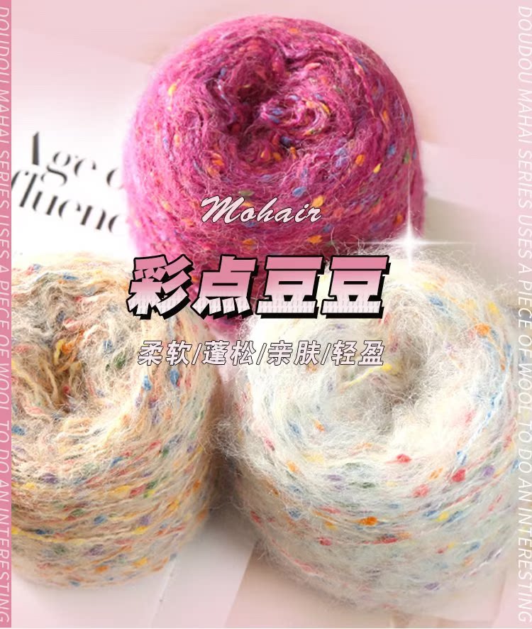 📚 彩点豆豆马海毛彩色豆豆线彩点中粗围巾帽子披肩七彩球线100克