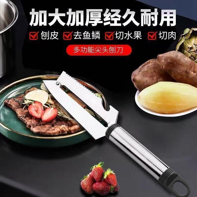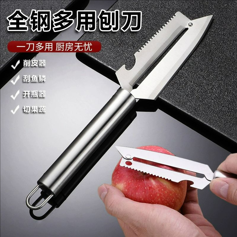 📚 不锈钢水果刀二合一削皮器家用厨房刀老式刮皮器多功能削皮刀神器