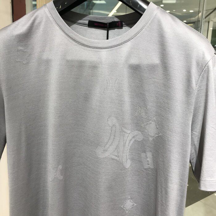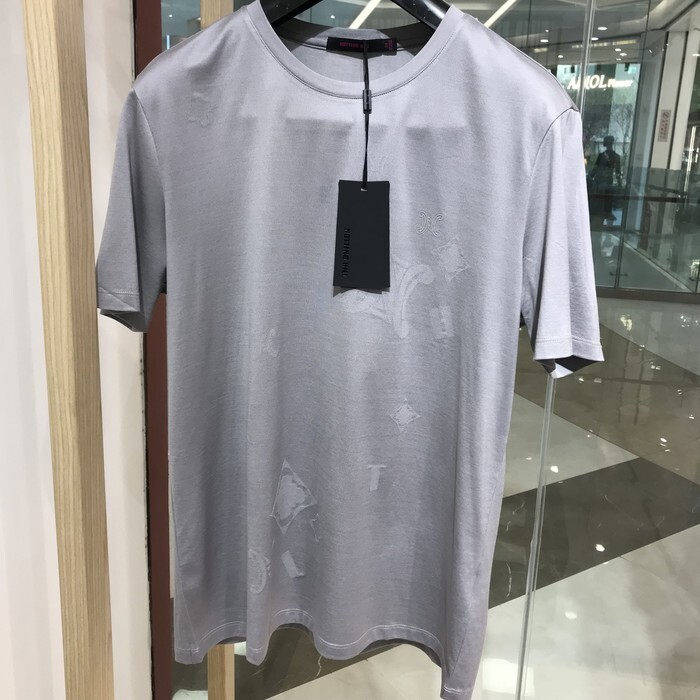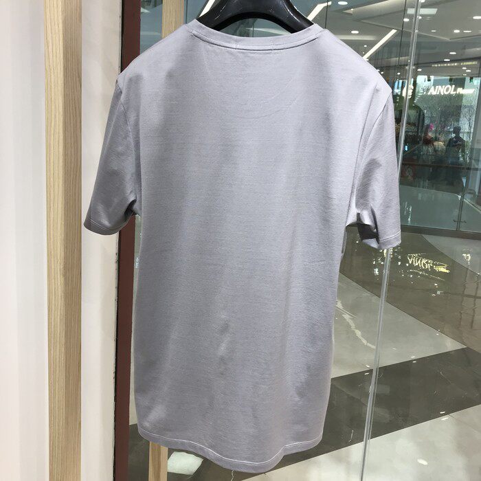 📚 依文诺丁山正品男士时尚休闲高档圆领凉感浅灰色亮面T恤半袖短袖