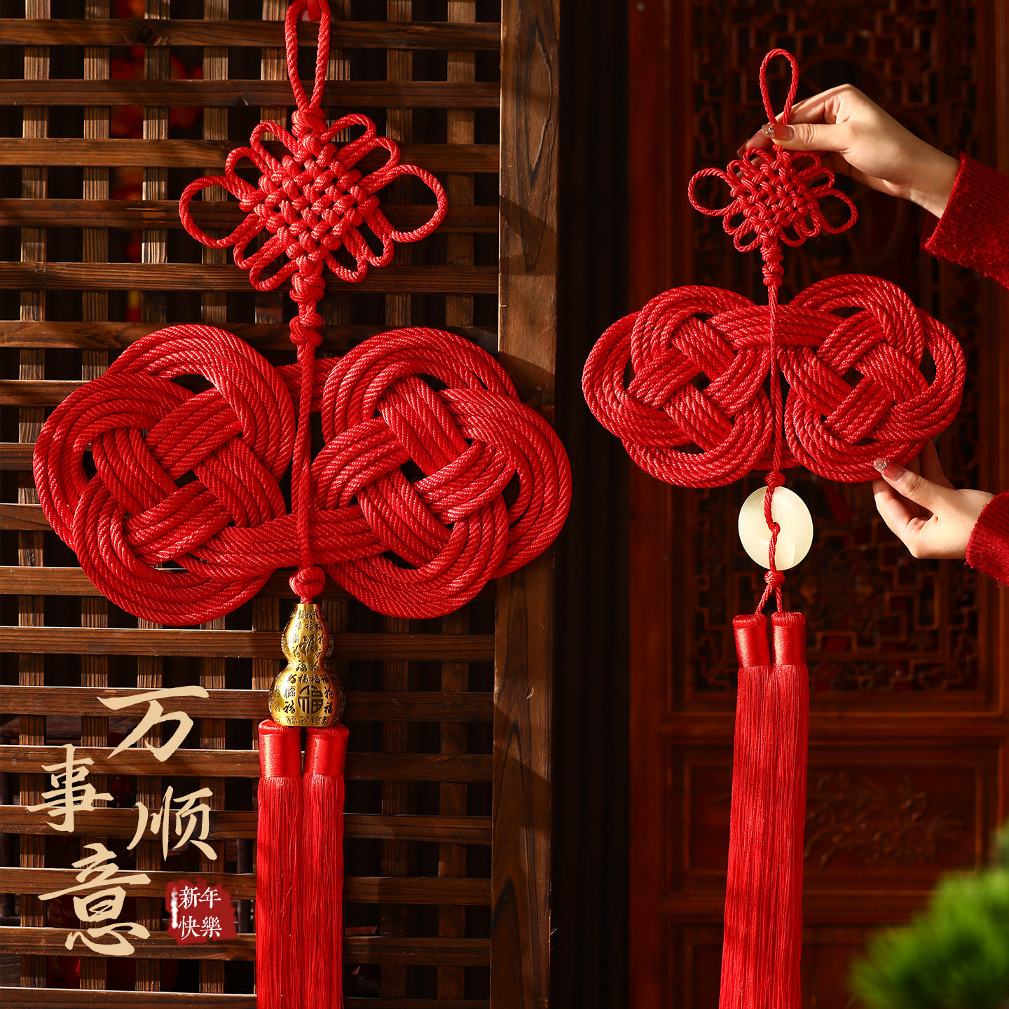 📚 2026双钱结中国结挂件客厅高档玄关玉石入户门电视背景墙中式挂饰