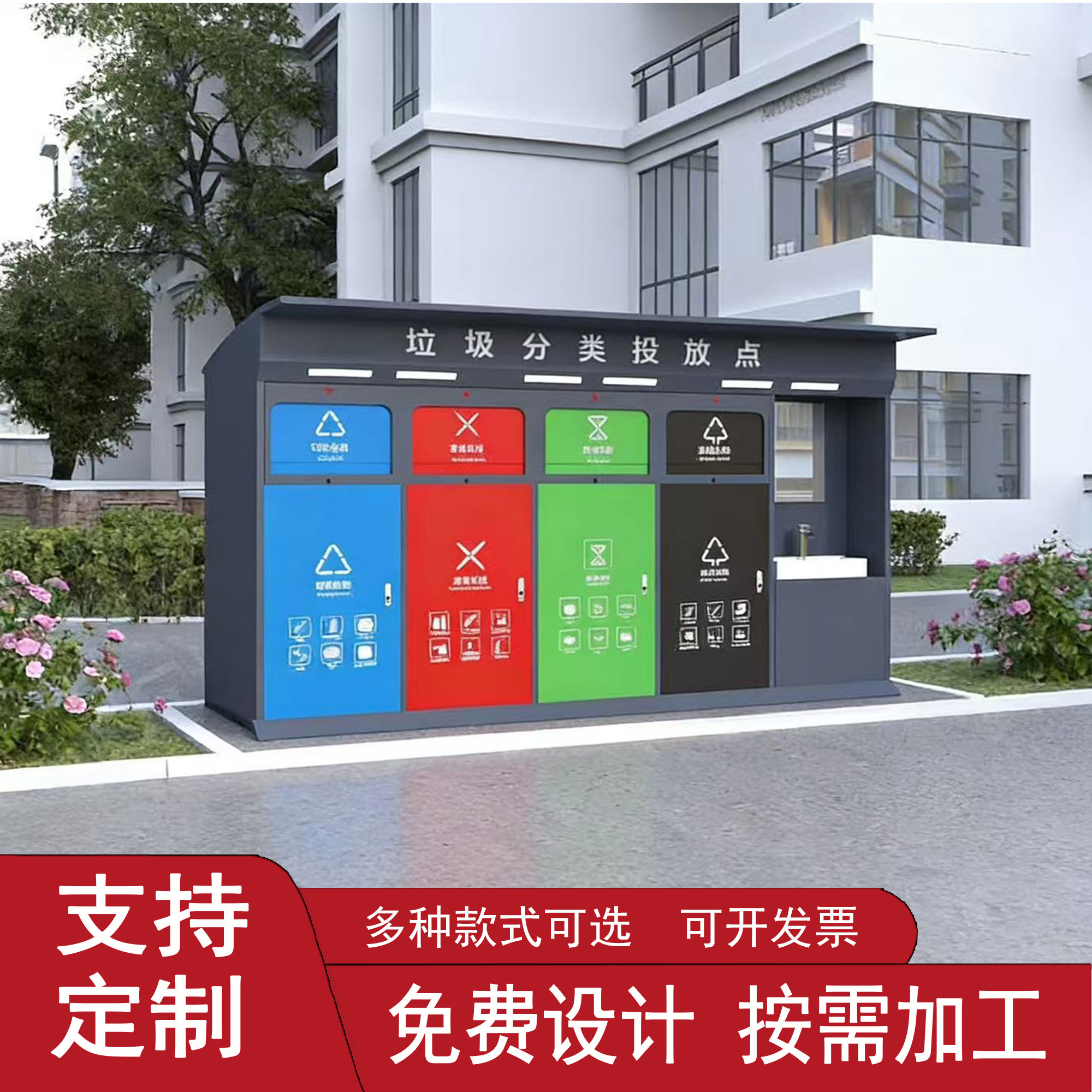 📚 厂家定制 户外智能垃圾分类房 垃圾回收站岗亭分类亭收集房分类棚