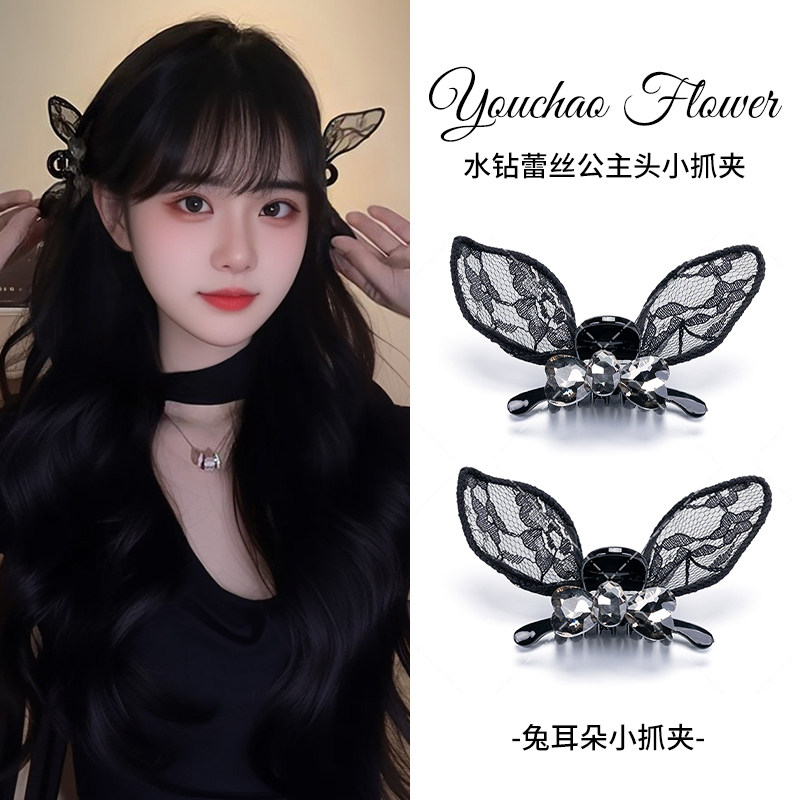 💖"蕾丝兔耳刘海发夹,公主头前额好搭,高级感水钻小抓夹,券后价6.8入手不后悔!"