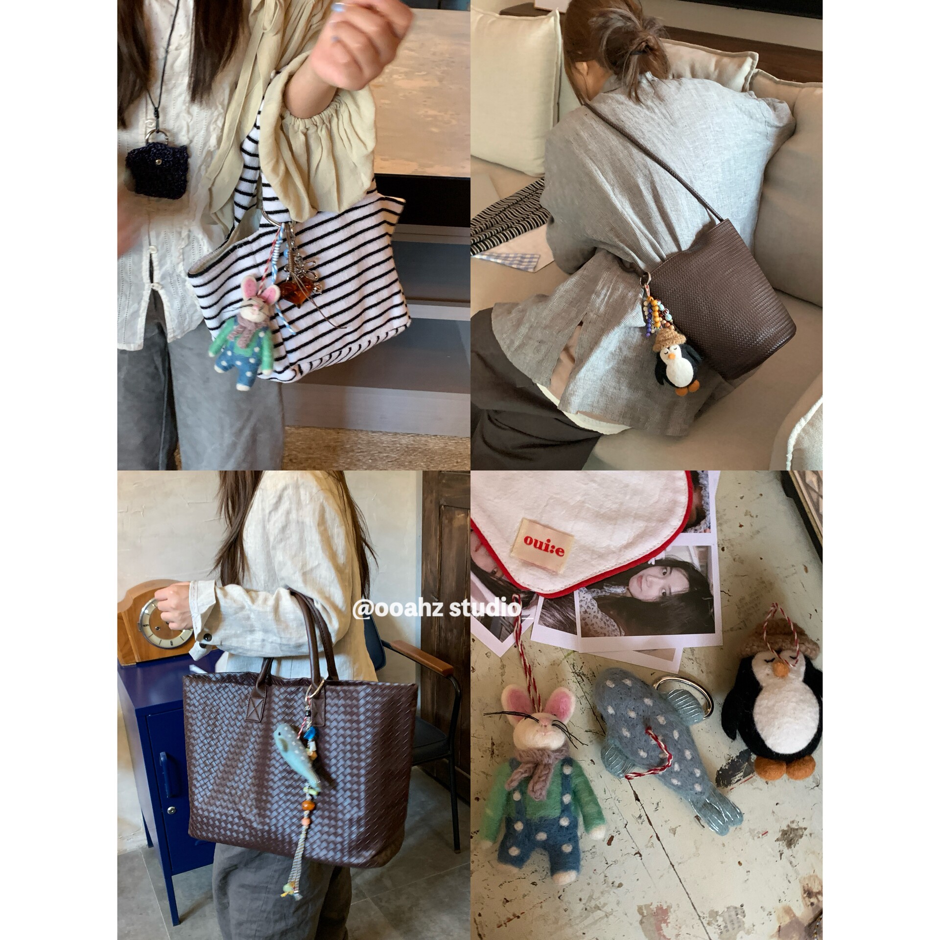 📚 三栖派对~韩国羊毛毡包挂件 可爱鲸鱼企鹅兔子钥匙扣动物玩偶配饰
