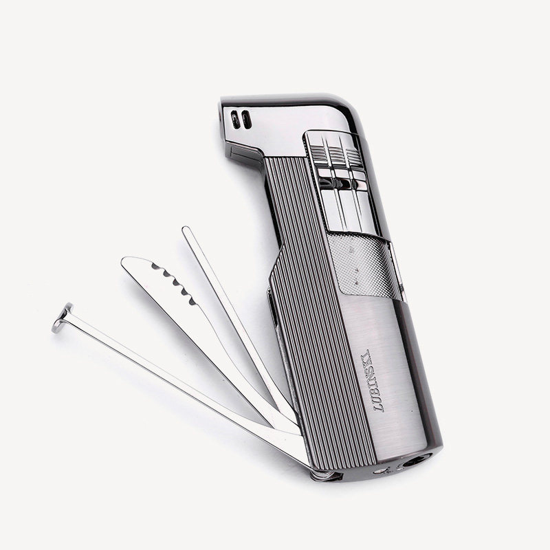 📚 Lubinski鲁宾斯基烟斗打火机 侧出火防止烧手 带烟斗压棒刮刀通针
