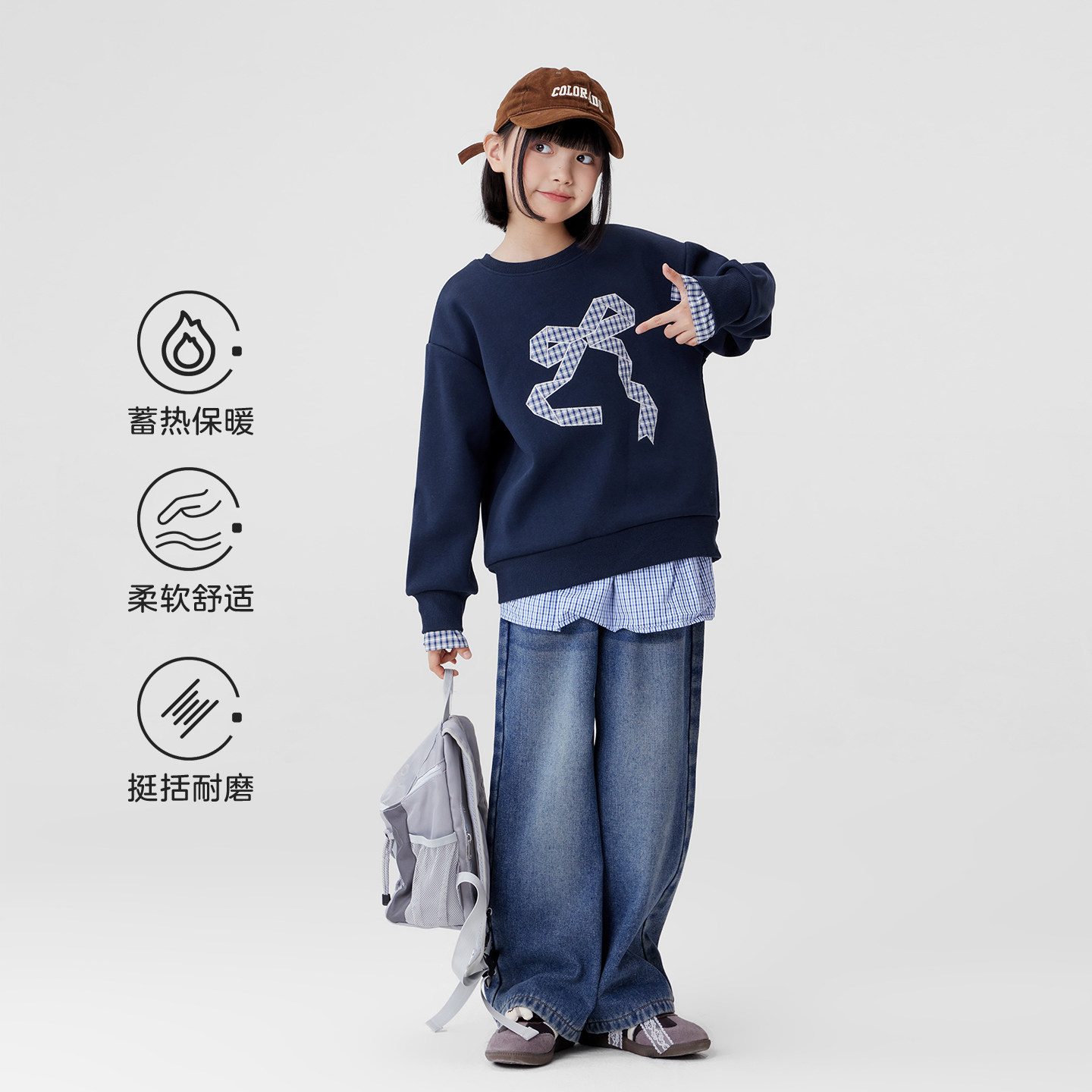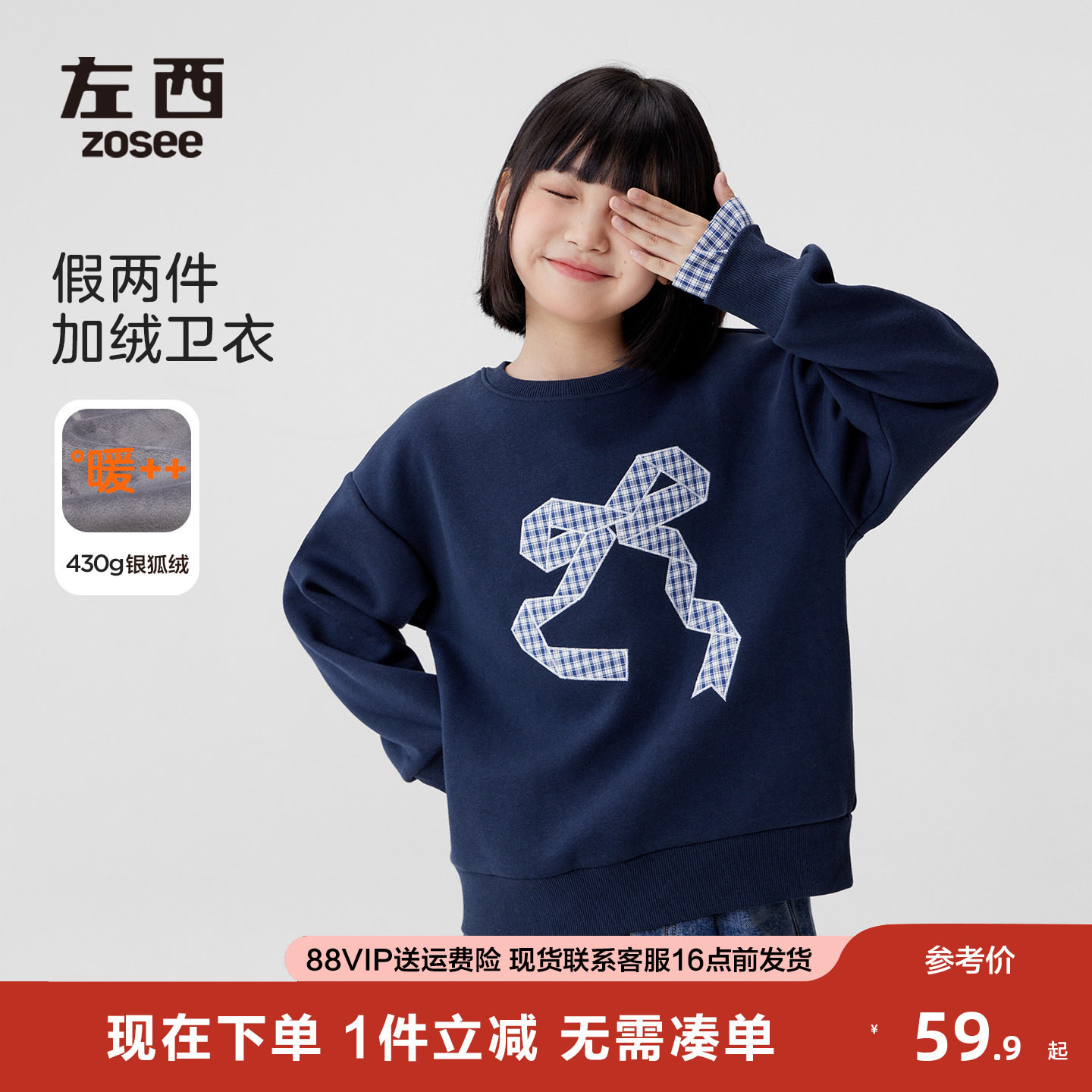 📚 左西女童加绒卫衣2026秋冬新款假两件儿童银狐绒外套女孩POLO衫冬