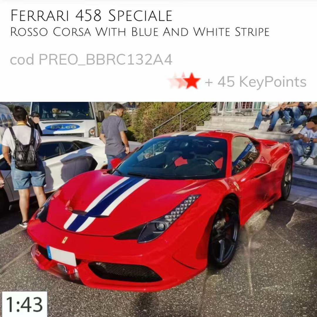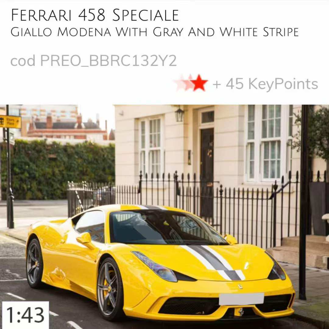 📚 定金 BBR 1:43 法拉利458 SPECIALE硬顶树脂汽车模型收藏品摆件