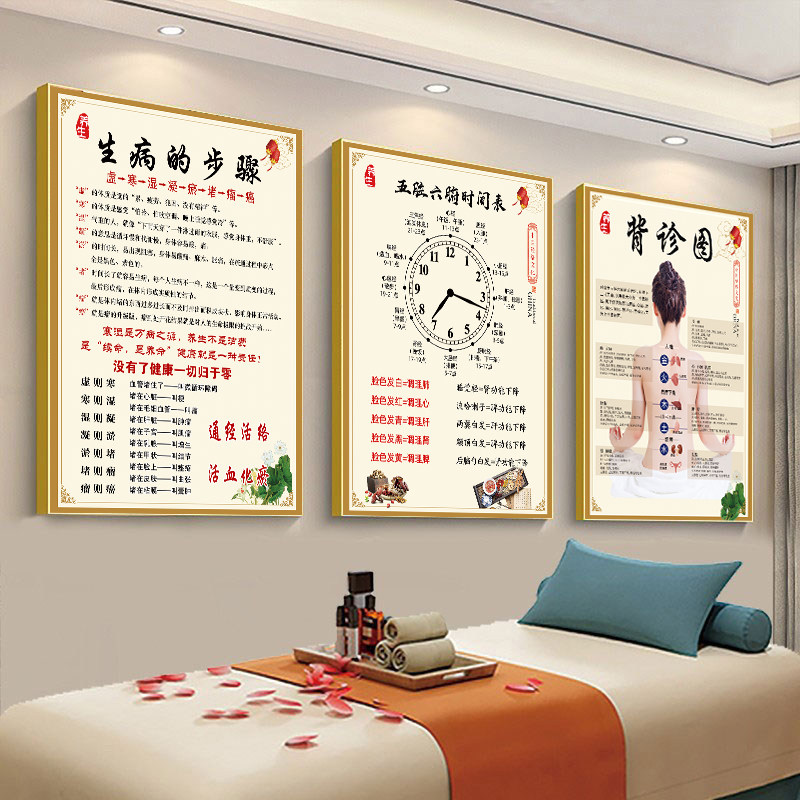 📚 生病的步骤海报图片中医养生馆装饰画养生之道九种体质墙贴画艾灸