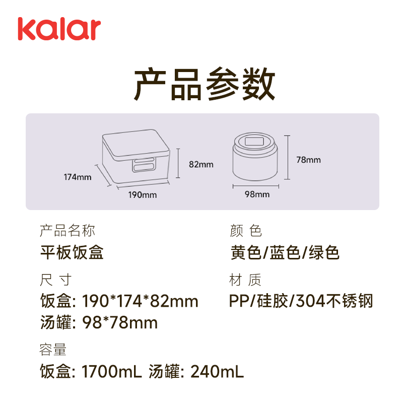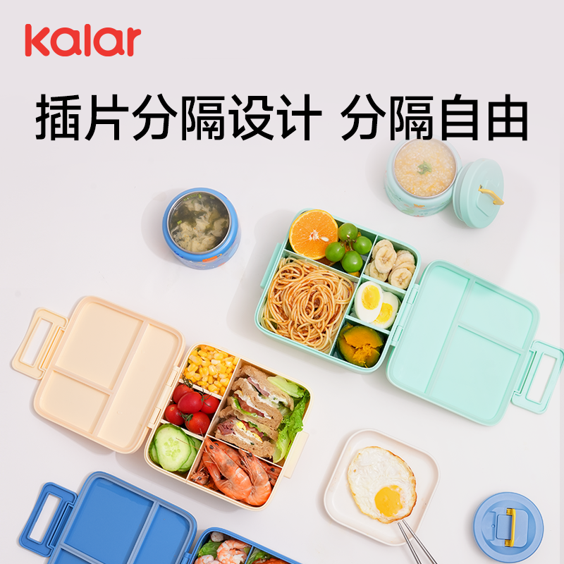 📚 kalar便携分隔饭盒可微波炉加热便当盒水果零食外带控糖餐盒