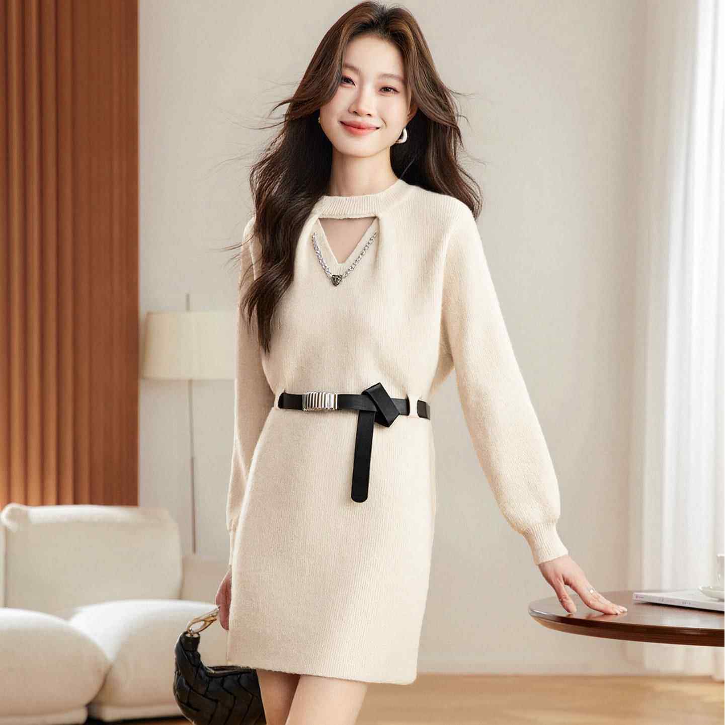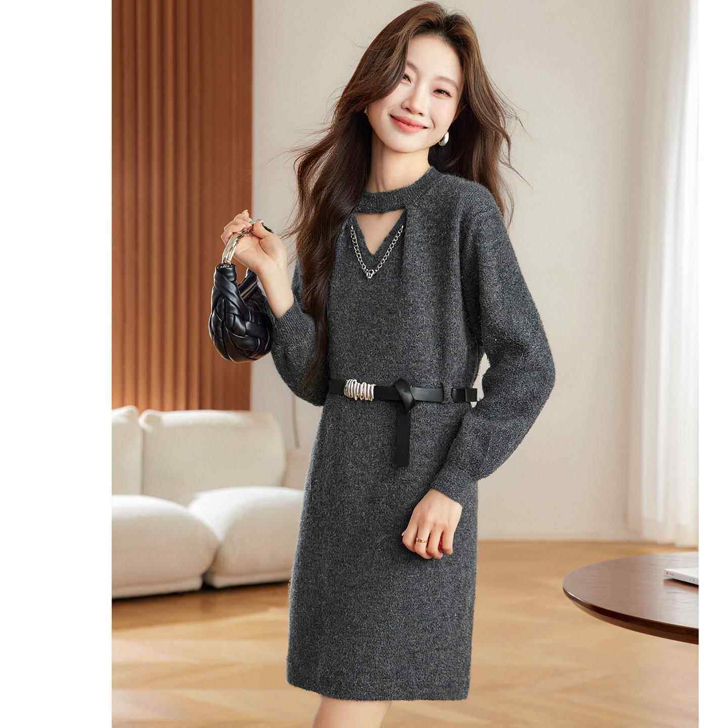 打底小个子中长连衣裙大衣