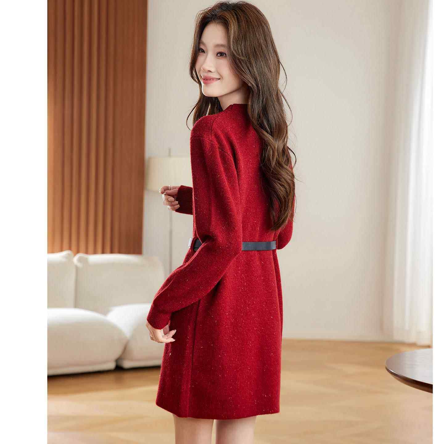 #秋冬穿搭 #红色针织连衣裙 #小个子女生穿搭 #气质显瘦 #大衣搭配