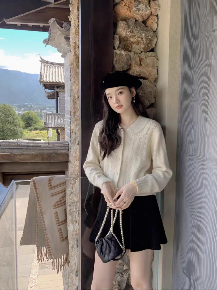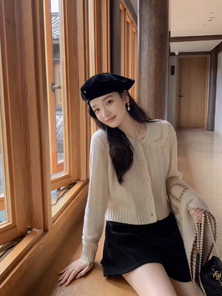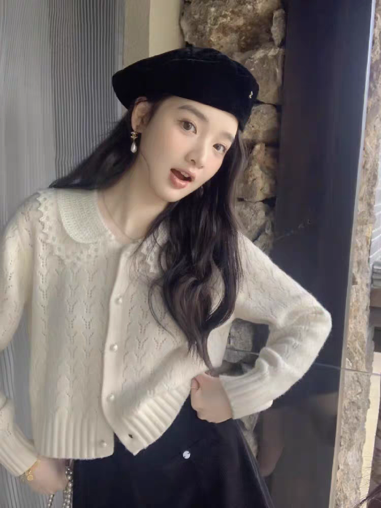 📚 超好看漂亮温柔甜美翻领短款针织开衫毛衣女秋冬2024新款