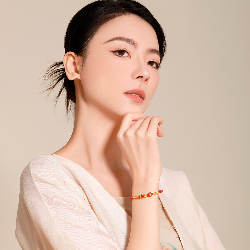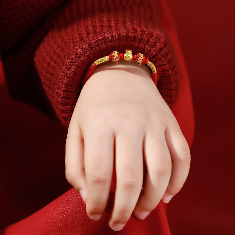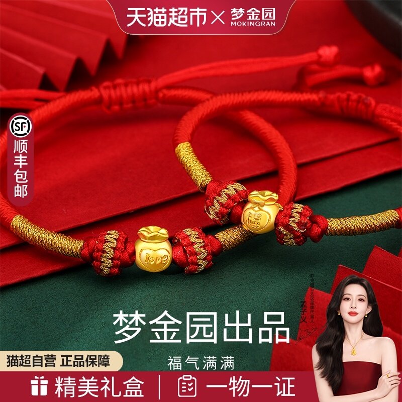 📚 梦金园蝴蝶结小福袋黄金转运珠福字足金手链硬金红绳亲子款礼物