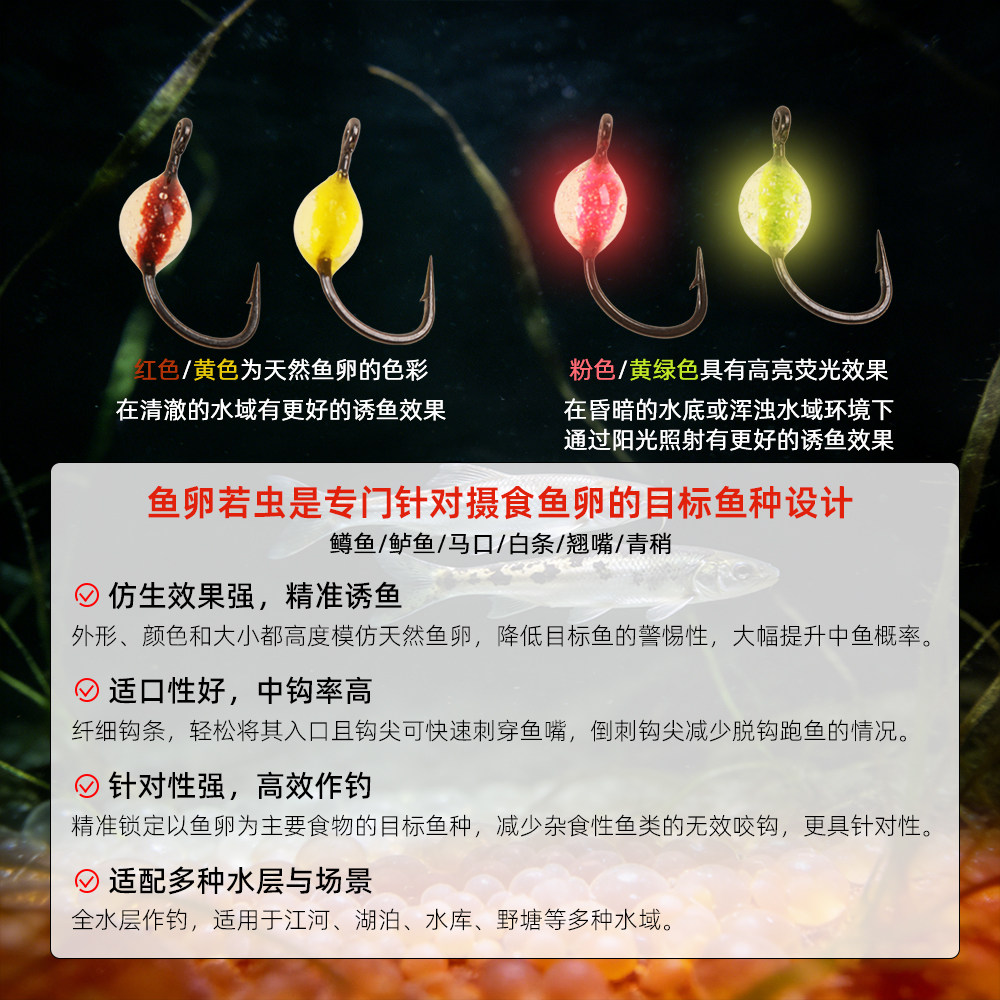 📚 乐渔现货 果冻鱼卵钩 UV涂胶 耐用高透沉水 鳟鱼淡水通杀LY057