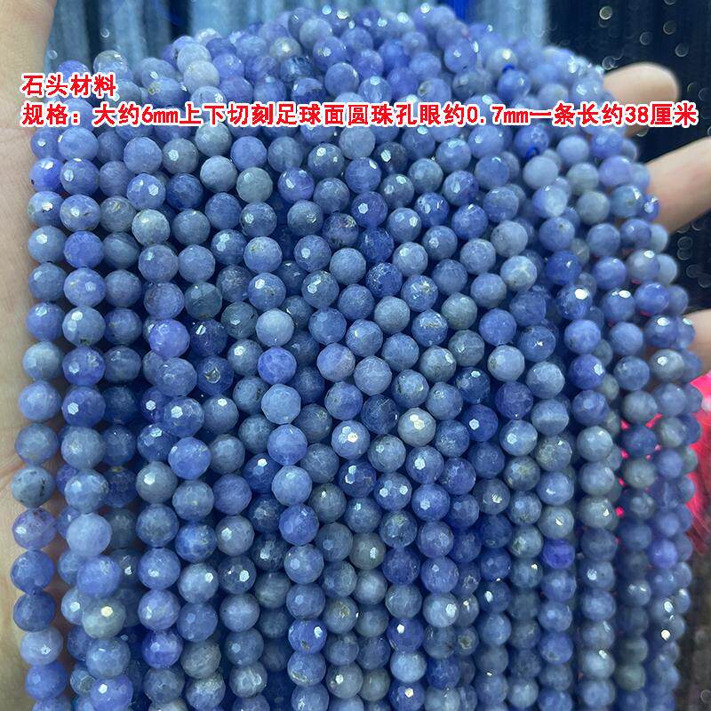 📚 天然坦桑石6mm切割足球面圆散珠手串项链半成品隔珠DIY头饰品材料
