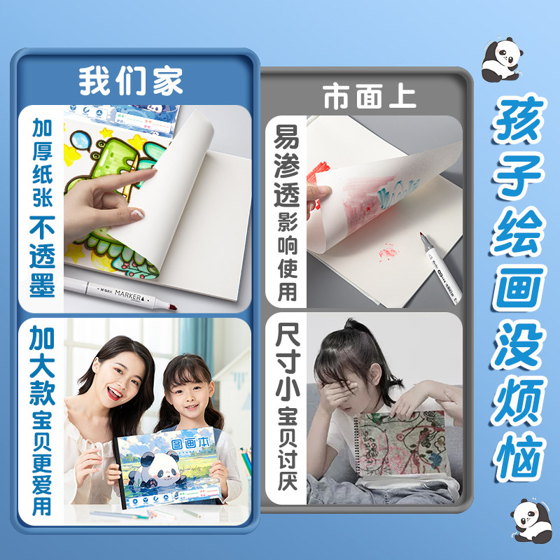 📚 可爱熊猫图画本小学生专用加厚画画本幼儿园绘画本儿童一二年级美术本空白画册涂鸦画本马克笔涂色画画素描本