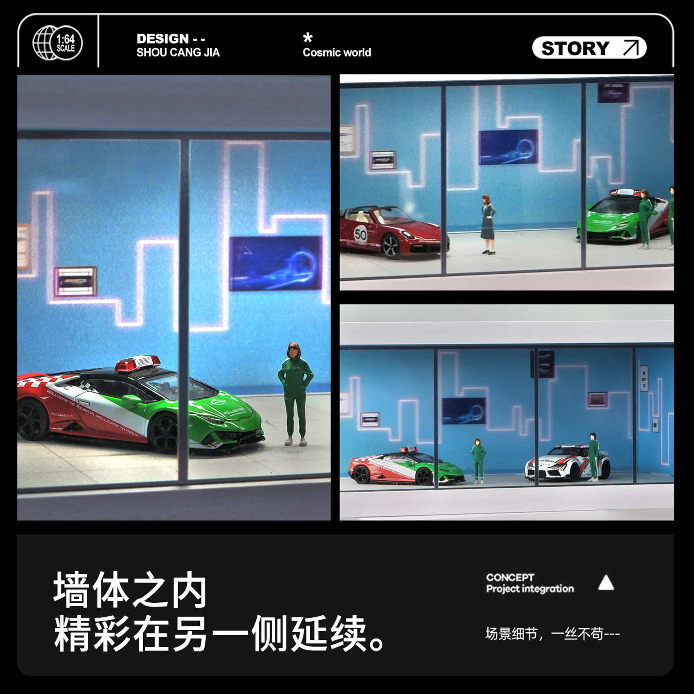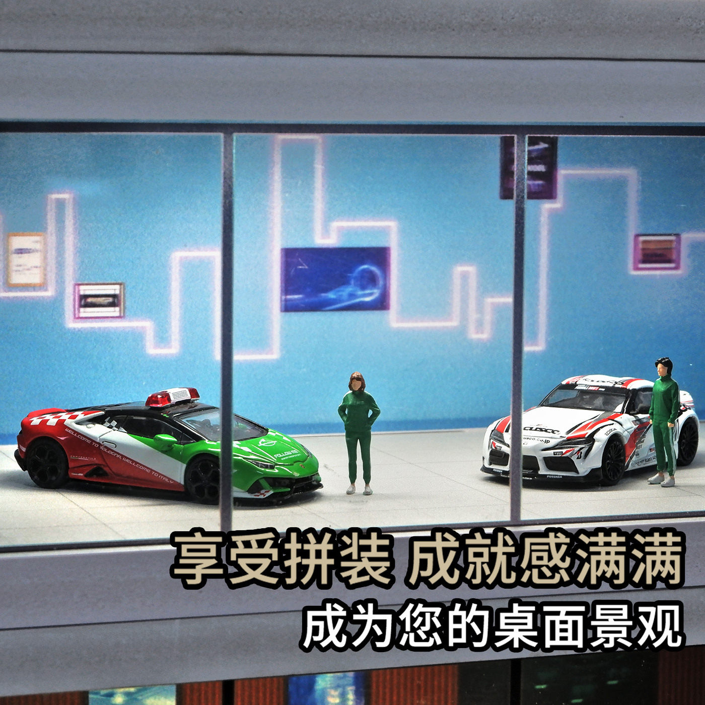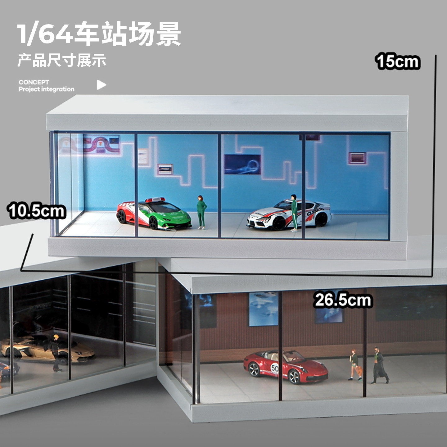 📚 收藏家1:64合金车模收纳展示盒灯光版微缩场景桌面装饰小摆件防尘