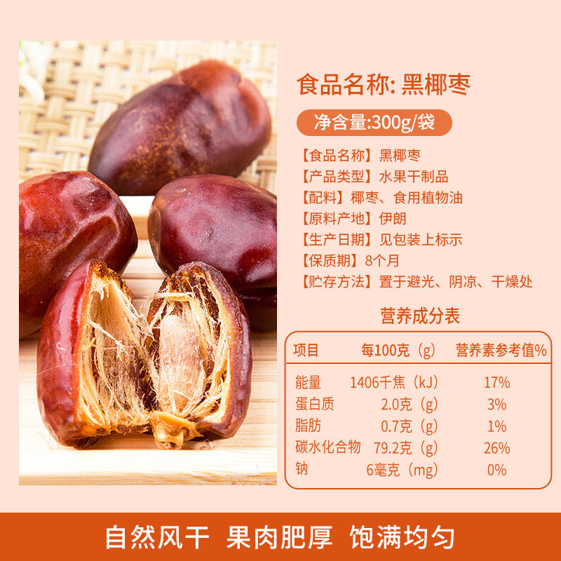 📚 楼兰蜜语阿联酋黑椰枣300g伊拉克大椰枣迪拜进口蜜枣红枣果干零食