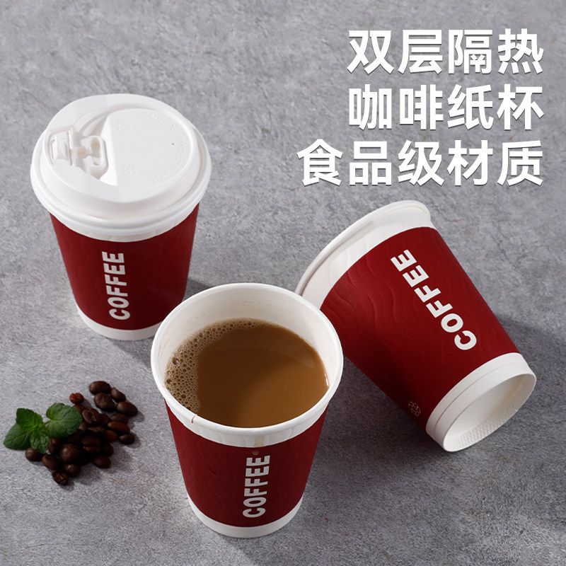 📚 咖啡纸杯一次性双层加厚隔热压纹杯瓦楞杯外卖外带打包热饮奶茶杯