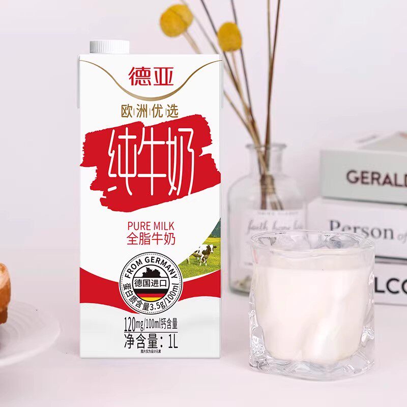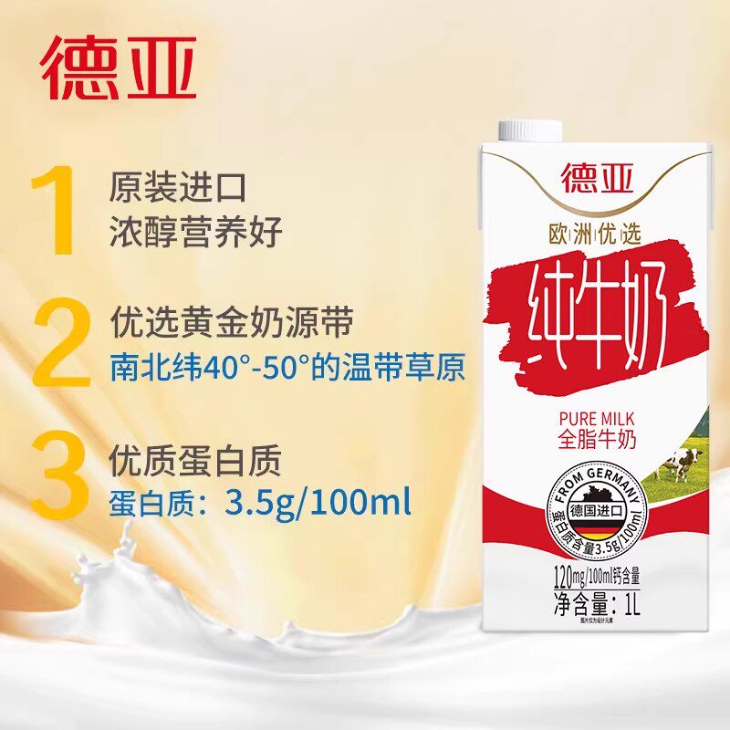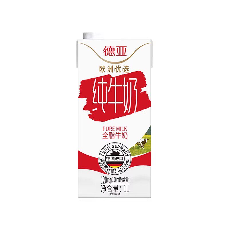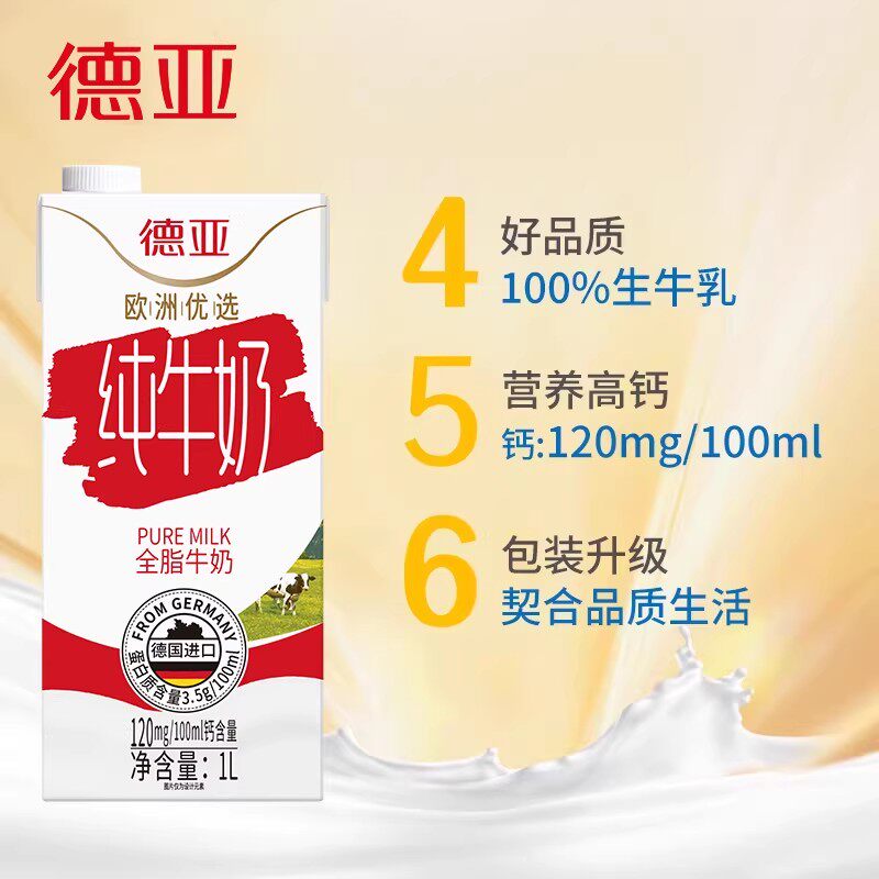 📚 德亚原装德国进口全脂纯牛奶1L*6盒2箱原生高钙早餐奶整箱家庭装