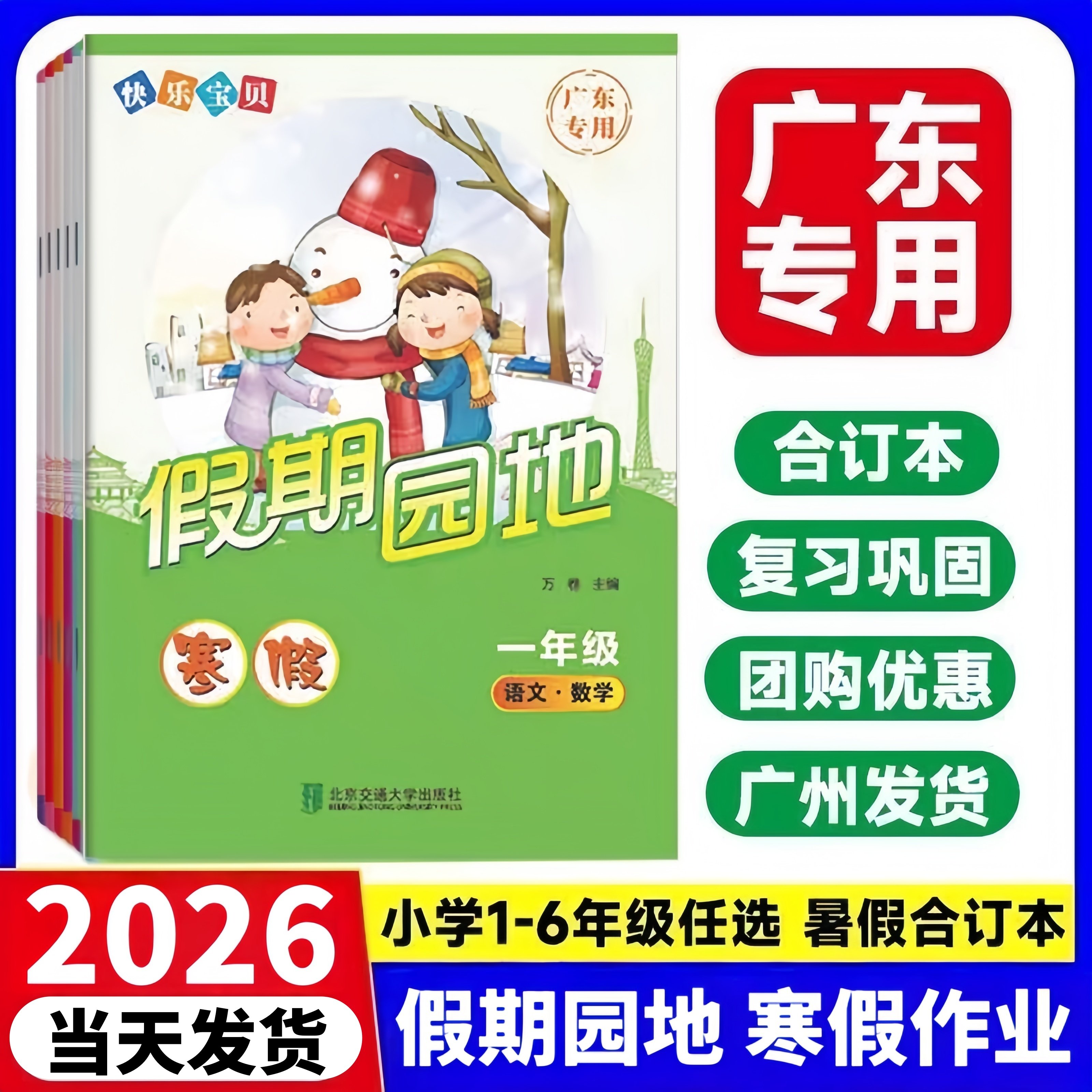 📚 2026新版 广东专用快乐宝贝寒假假期园地小学一二三四五六年级语文数学英语合订本 寒假作业123456年级广州深圳珠海汕头等练习册