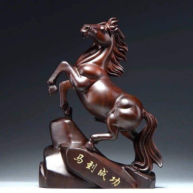 📚 黑檀木雕马摆件实木马到成功工艺品家居客厅电视柜装饰品开业礼品