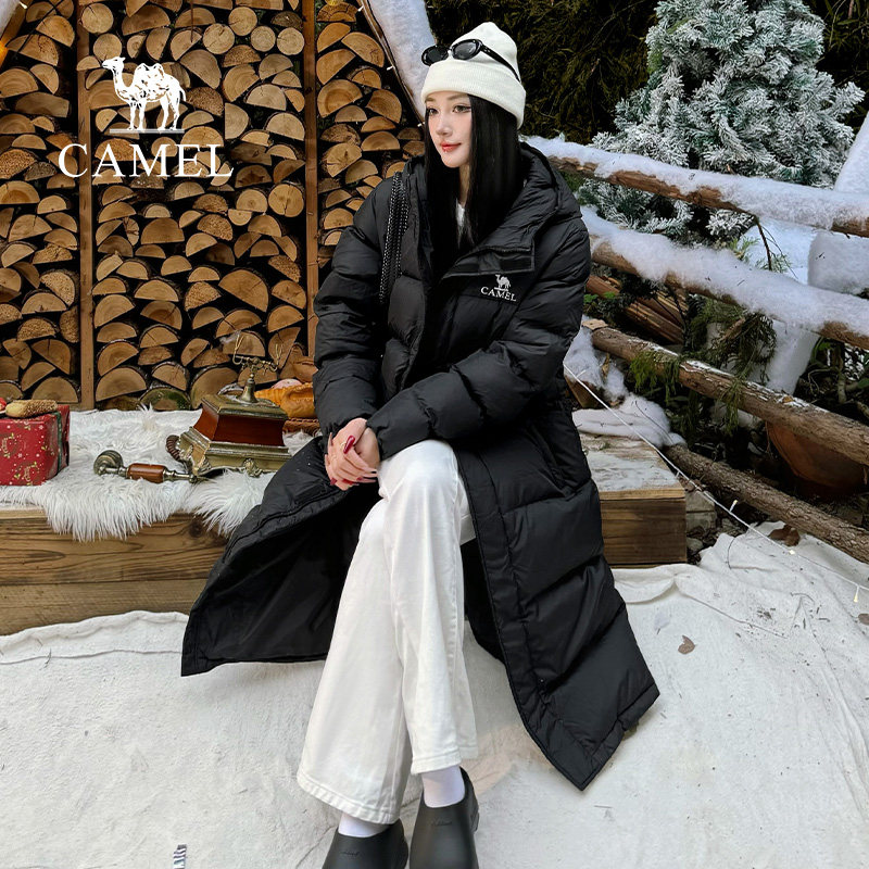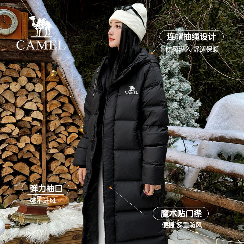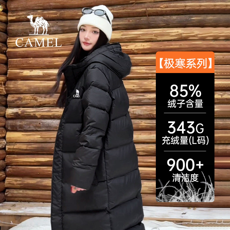 📚 骆驼女装中长款羽绒服2025冬季连帽加厚防水保暖极寒外套男女