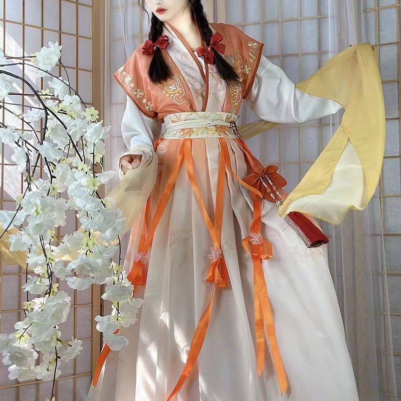 📚 余莲记原创汉服与枫晚唐制褙子一片式摆群改良汉元素套装秋季款