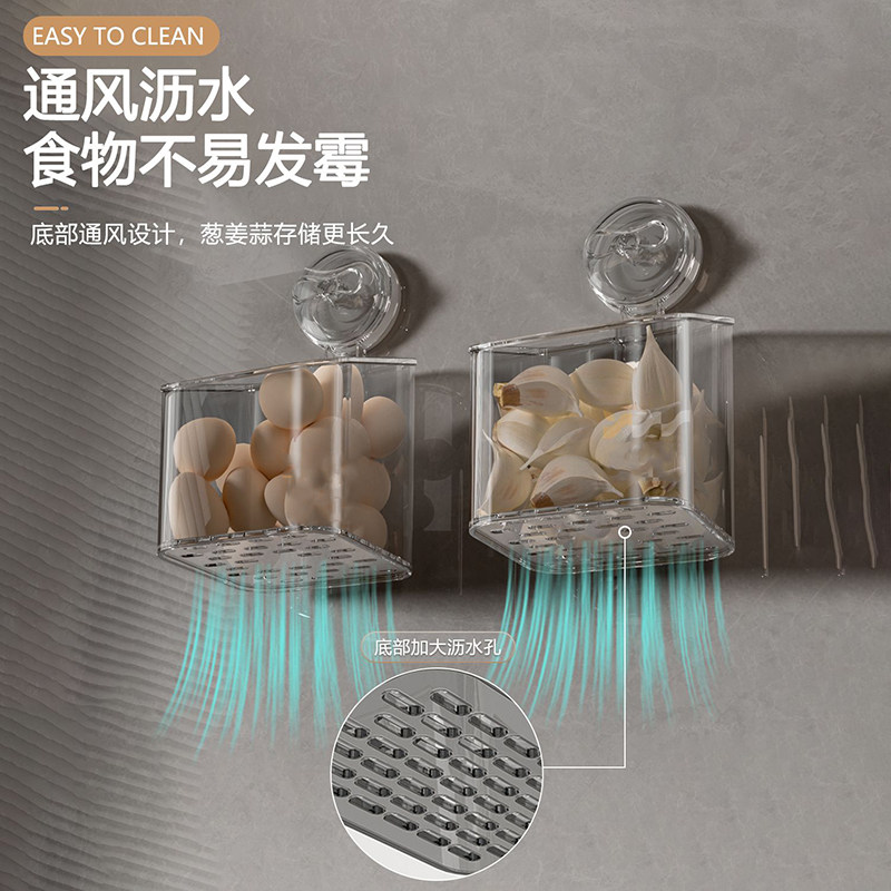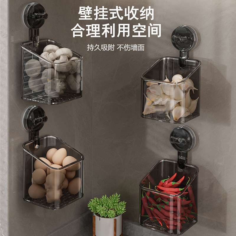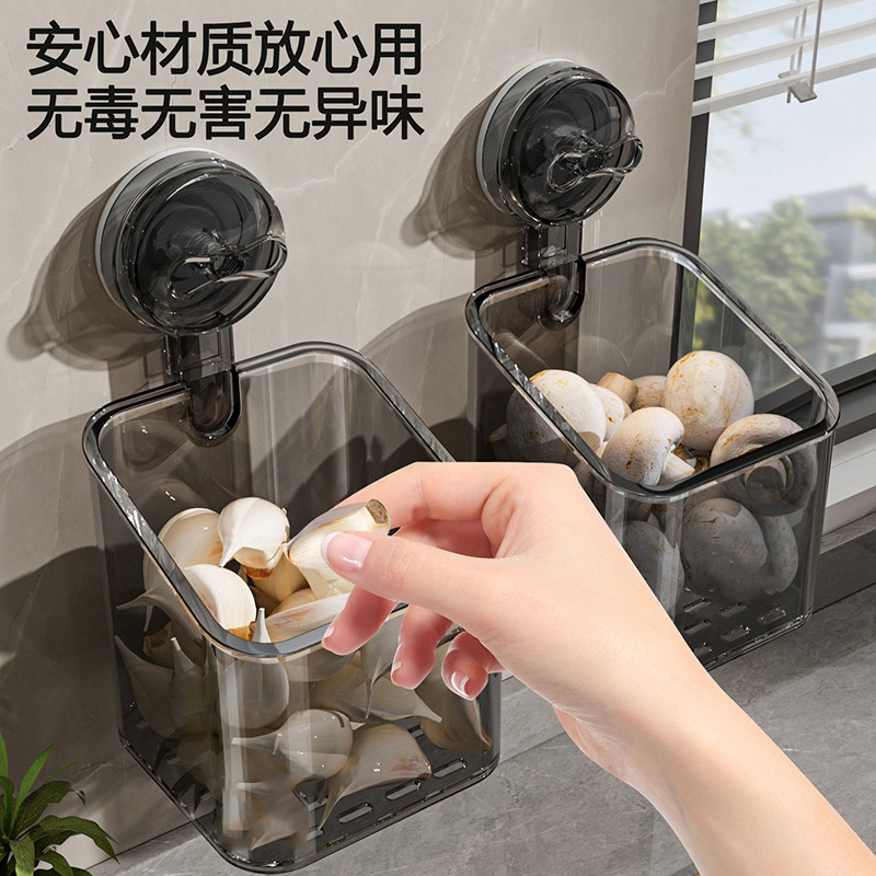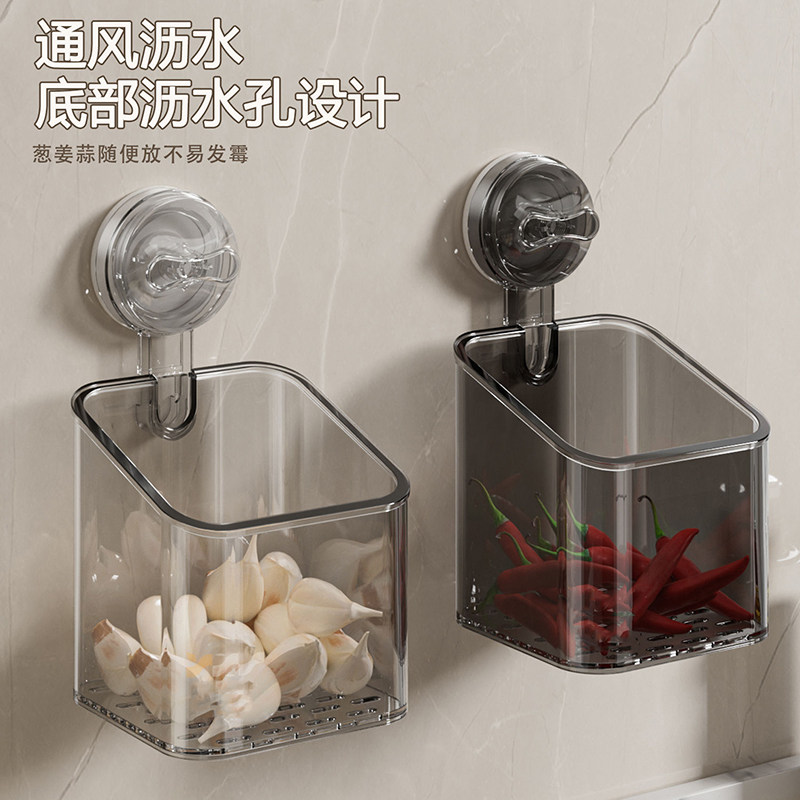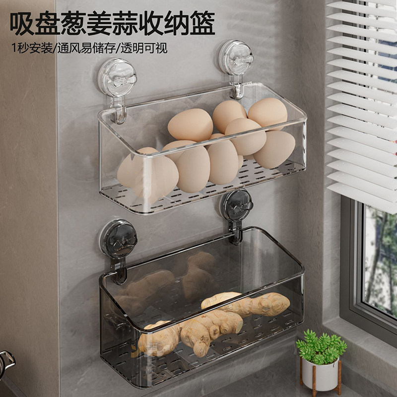 📚 厨房葱姜蒜收纳盒壁挂免打孔吸盘收纳筐生姜大蒜置物架小挂篮神器
