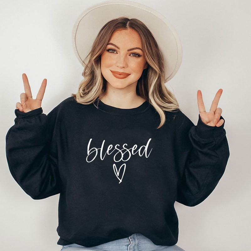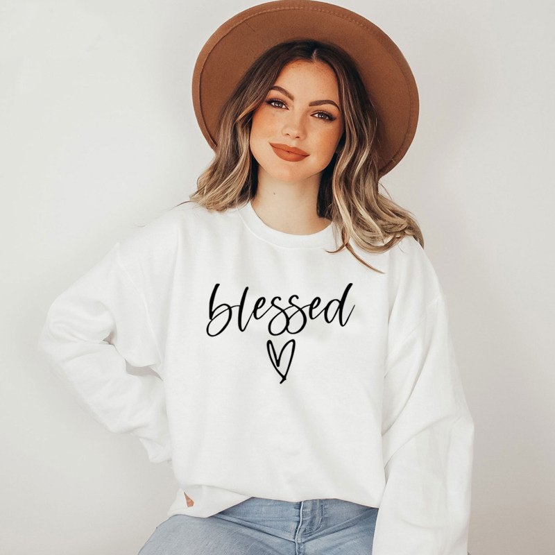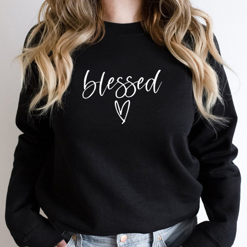 📚 Blessed Christian Religious Sweatshirts字母保佑爱心印花卫衣