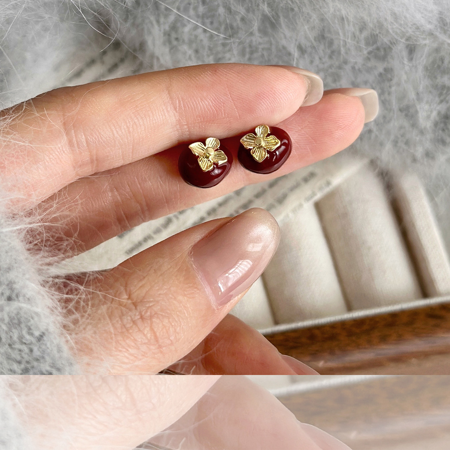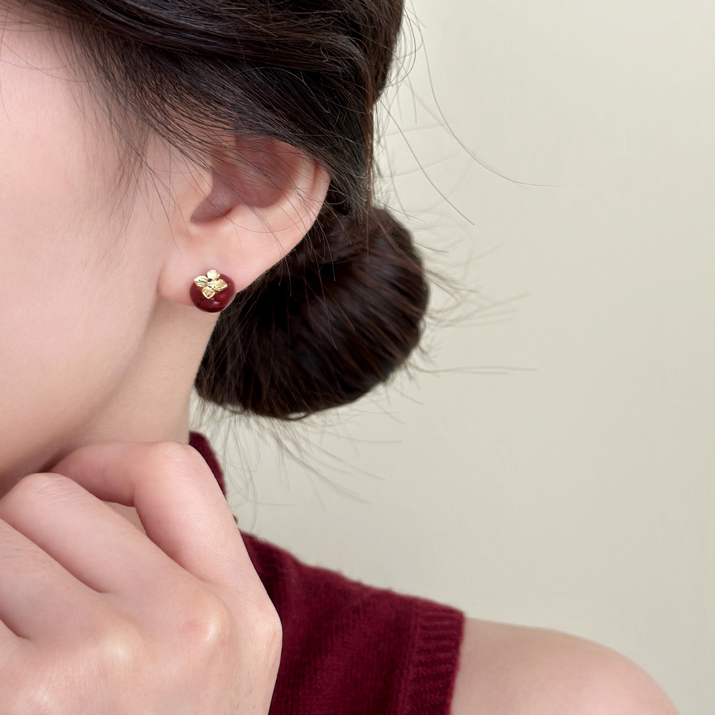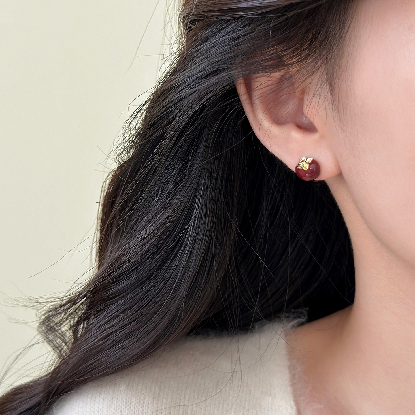 📚 红色滴釉柿柿如意耳钉2025新款爆款高级感轻奢小众耳环秋冬耳饰女