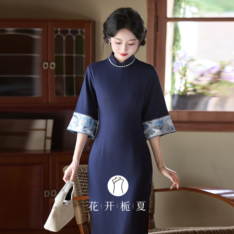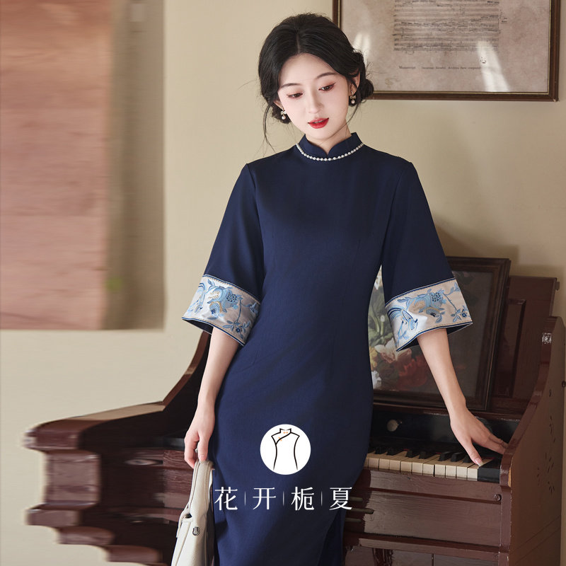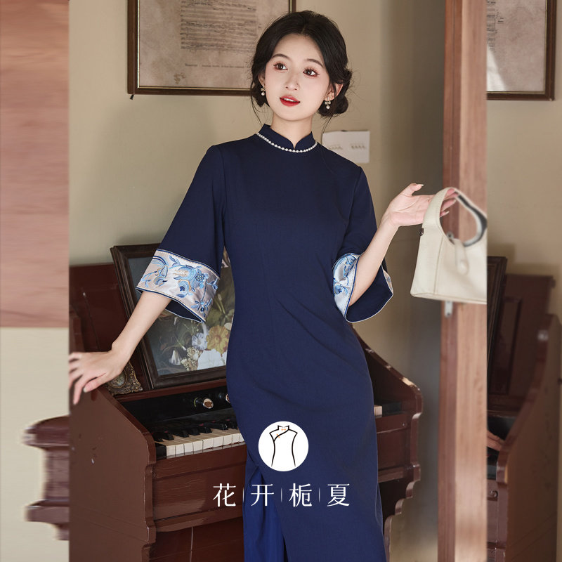 📚 复古民国风藏青色旗袍2025秋季新款文艺书卷气少女连衣裙8/18