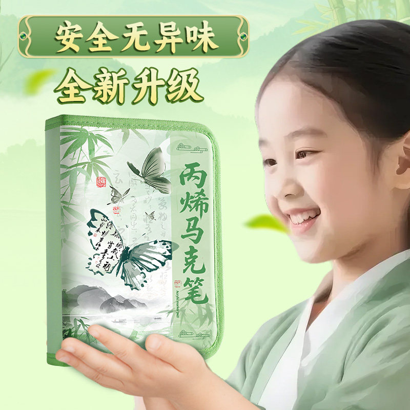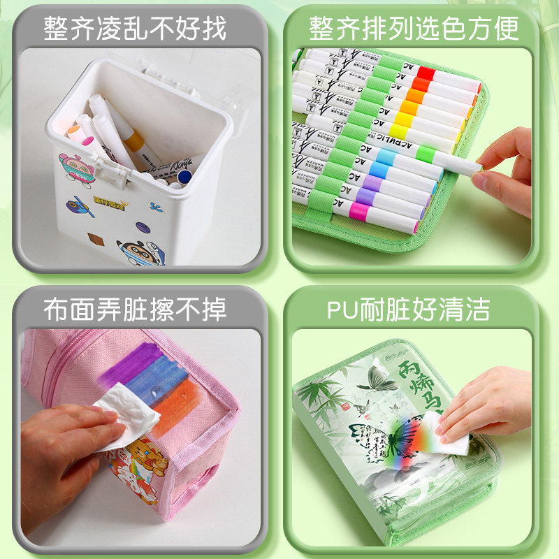 📚 国风丙烯马克笔收纳盒收纳袋女小学生专用大容量多功能收纳包男孩女孩款高颜值简约文具笔袋便携水彩笔收纳盒