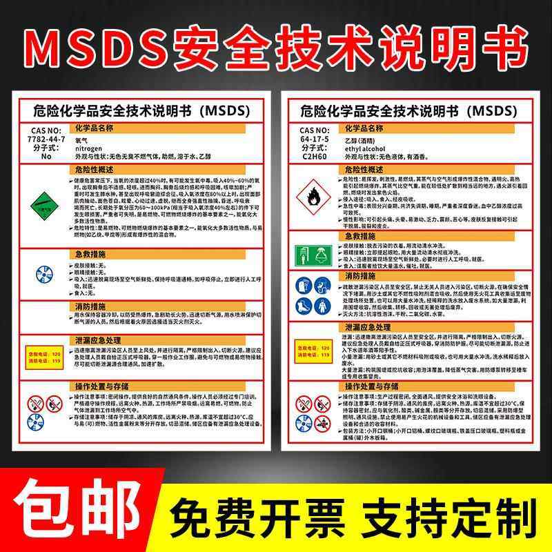 📚 氧气危险化学品安全技术说明书msds 汽油乙醇柴油氩气周知卡标识牌 工厂仓库车间危化品易燃有毒腐蚀警示牌
