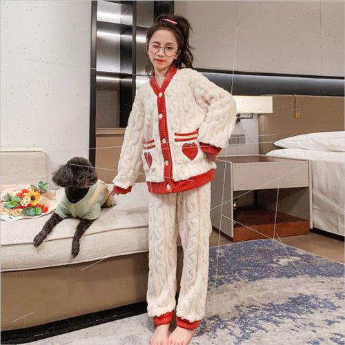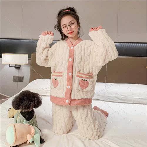 📚 Pajamas girls fall and winter coral velvet padded thickened