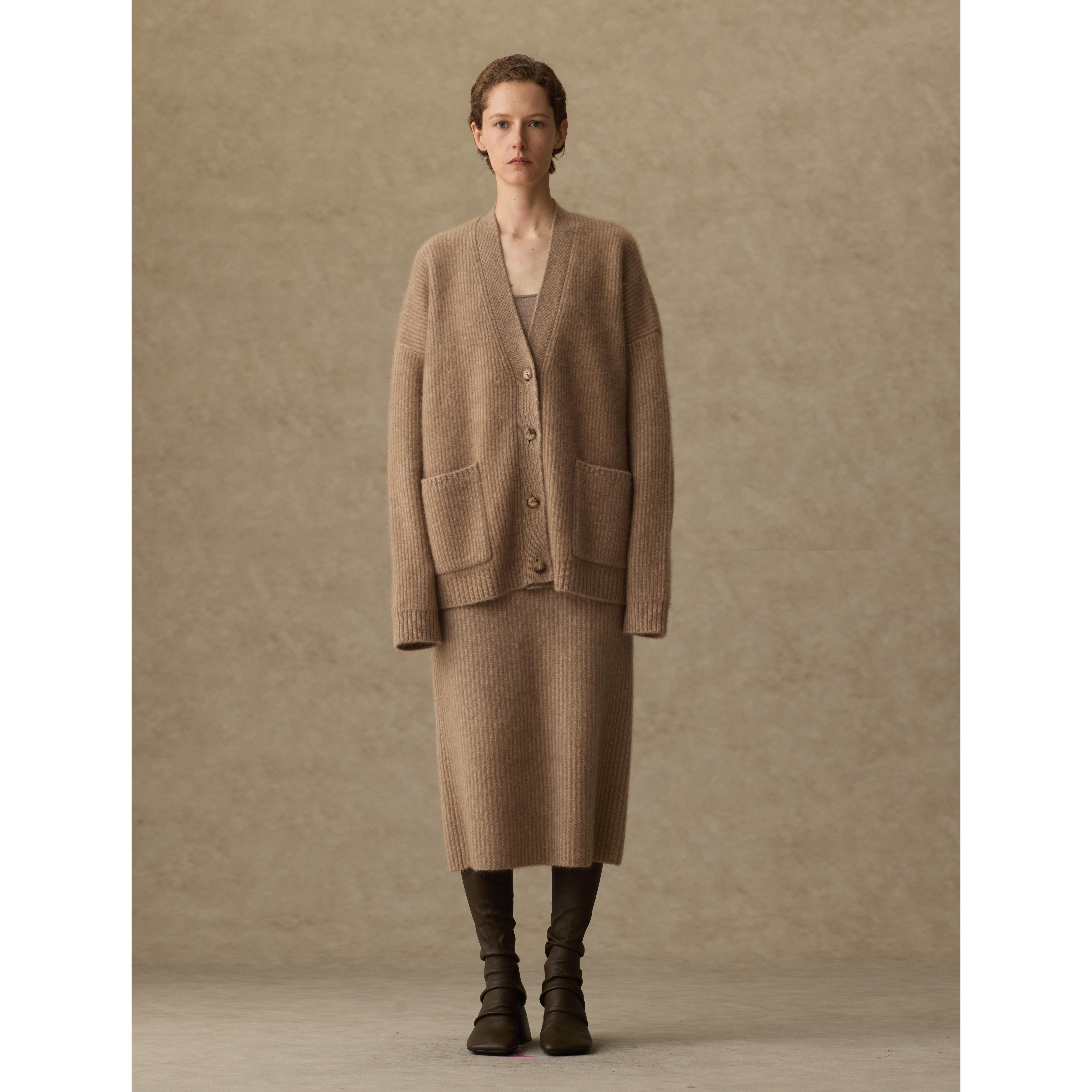 📚 1436 x UMA WANG 山羊绒燕麦色粗纺V领双畦缩绒针织秋冬系扣开衫