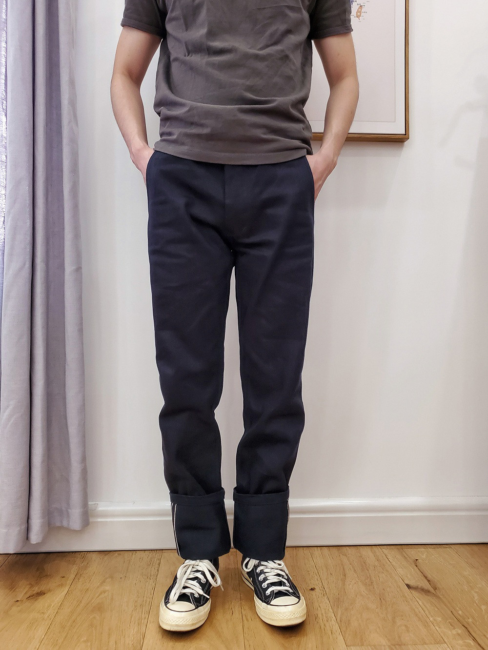 19¥ HU293 iaAuUi0bE9p¥ https://m.tb.cn/h.7ITQ8hv 16oz进口双染斜条纹赤耳高密度军官裤Khakis 修身直筒工装休闲 --------------------- 【原售价】458元 【现售价】458元。