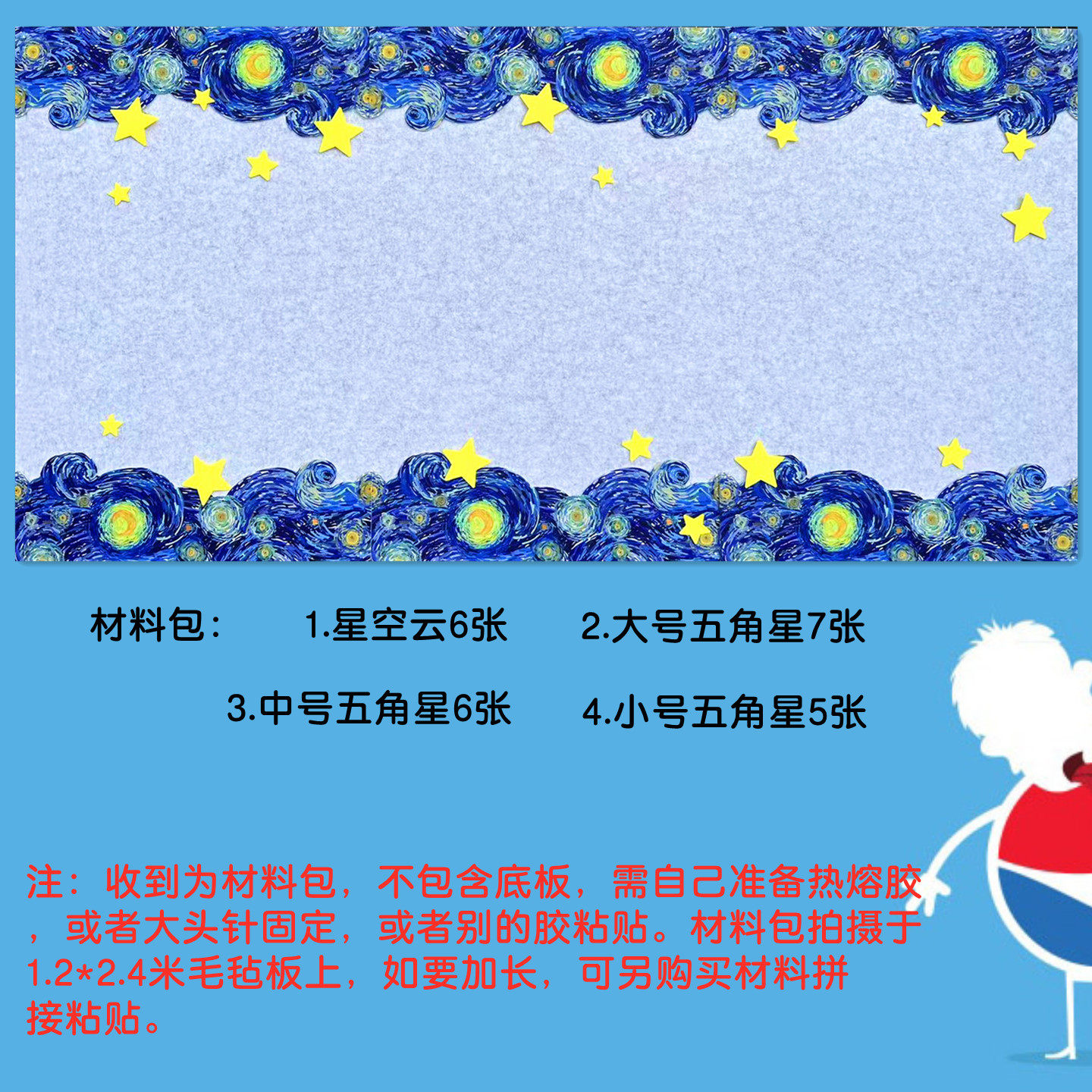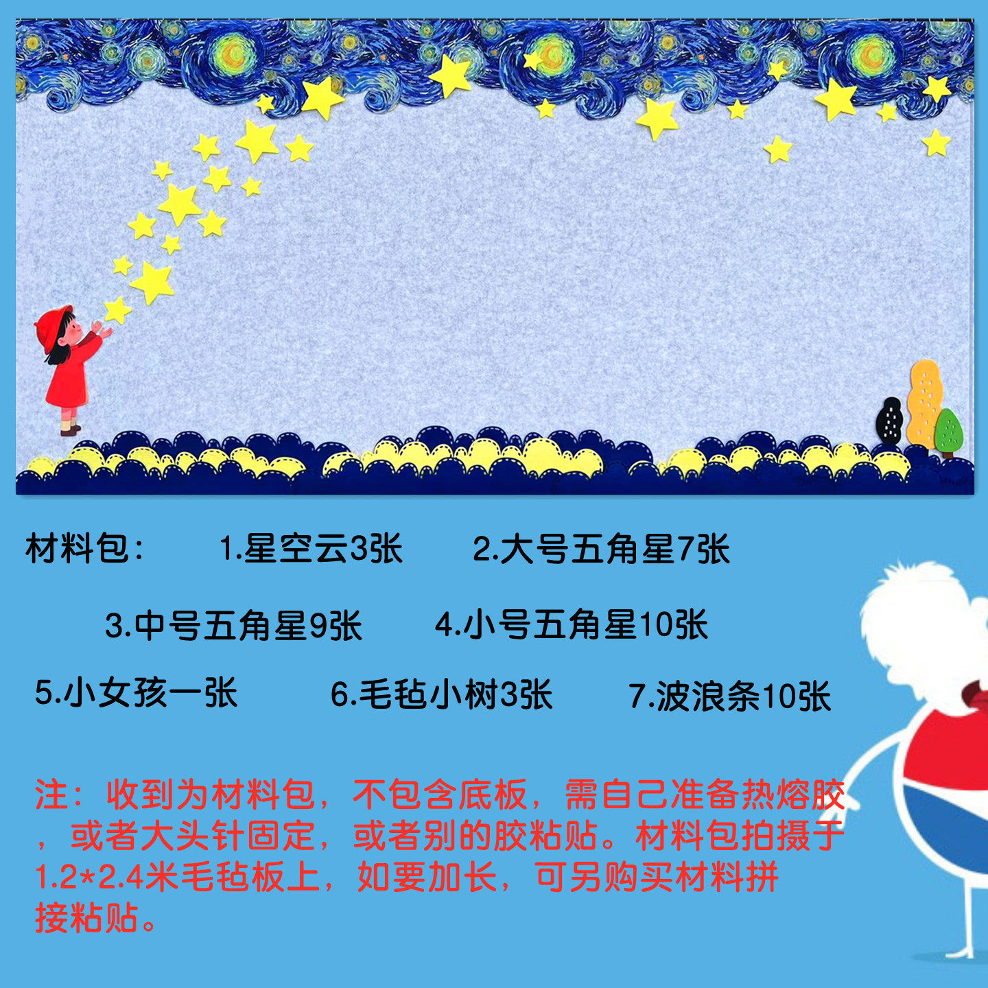 📚 小学幼儿园梵高星空主题黑板报卡通星星教室走廊环创材料毛毡墙贴