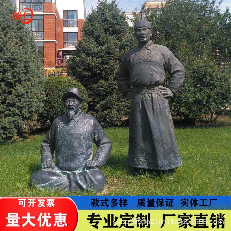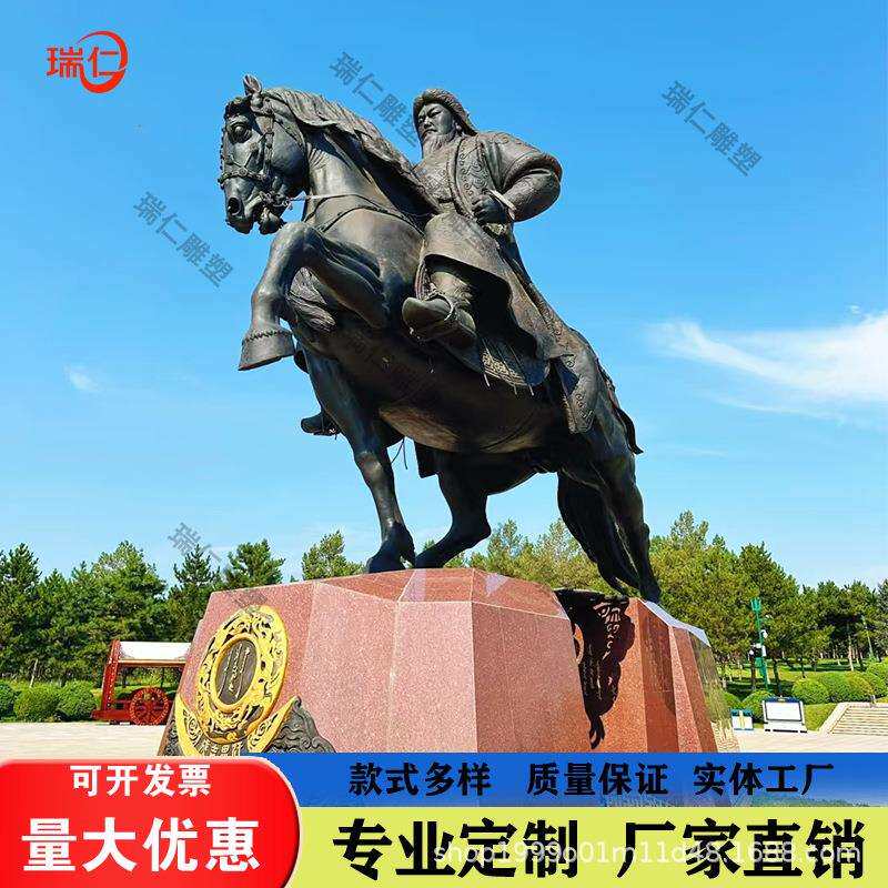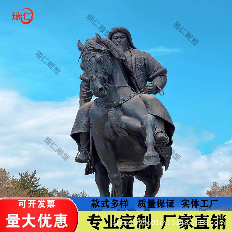 📚 玻璃钢成吉思汗雕塑铸铜人物蒙古士兵雕像大汉铁木真坐像户外摆件