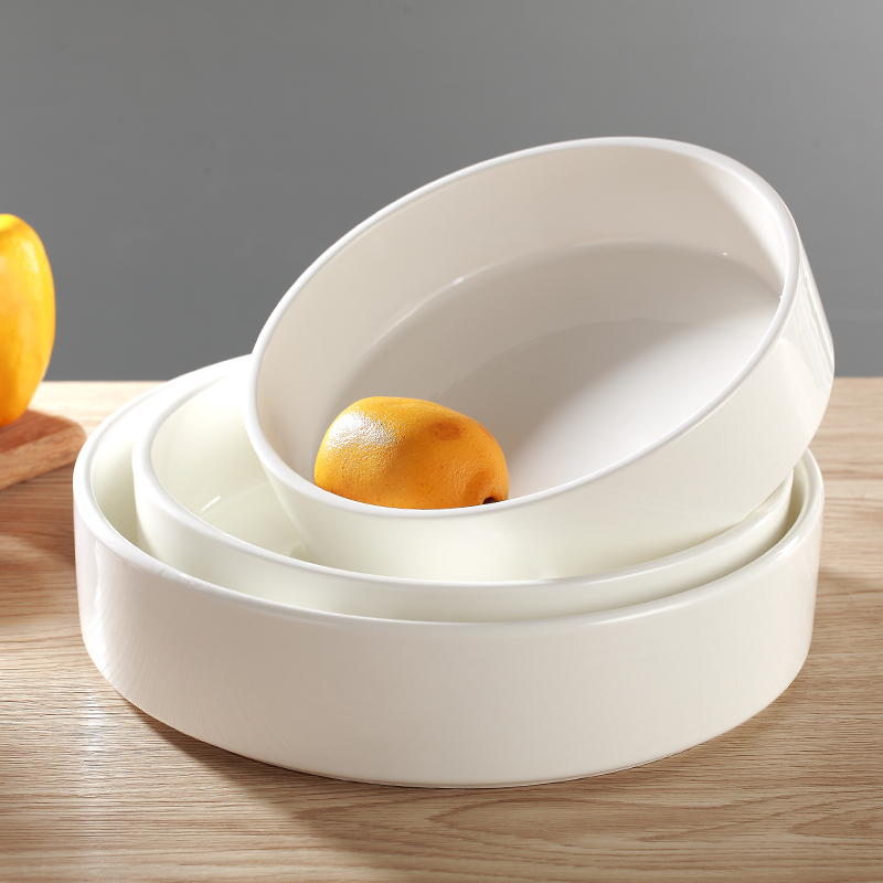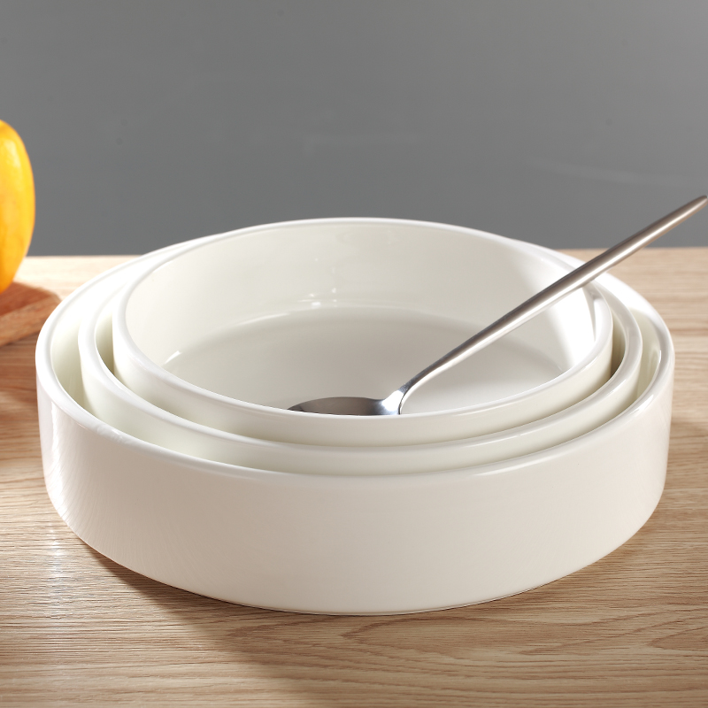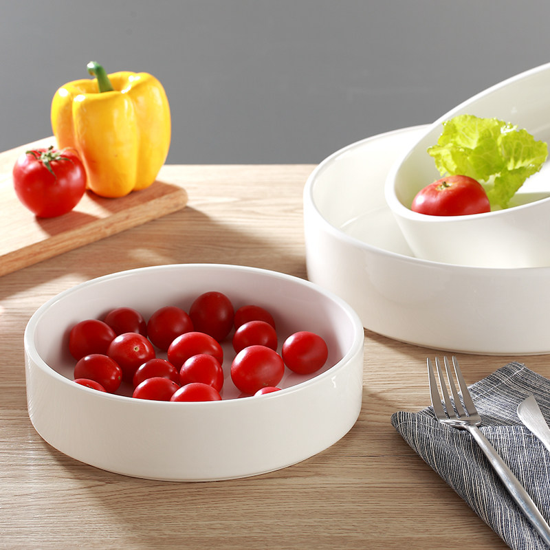 📚 纯白创意菜碗家用和面盆个性汤盆大号圆形陶瓷沙拉碗菜盘家用餐具