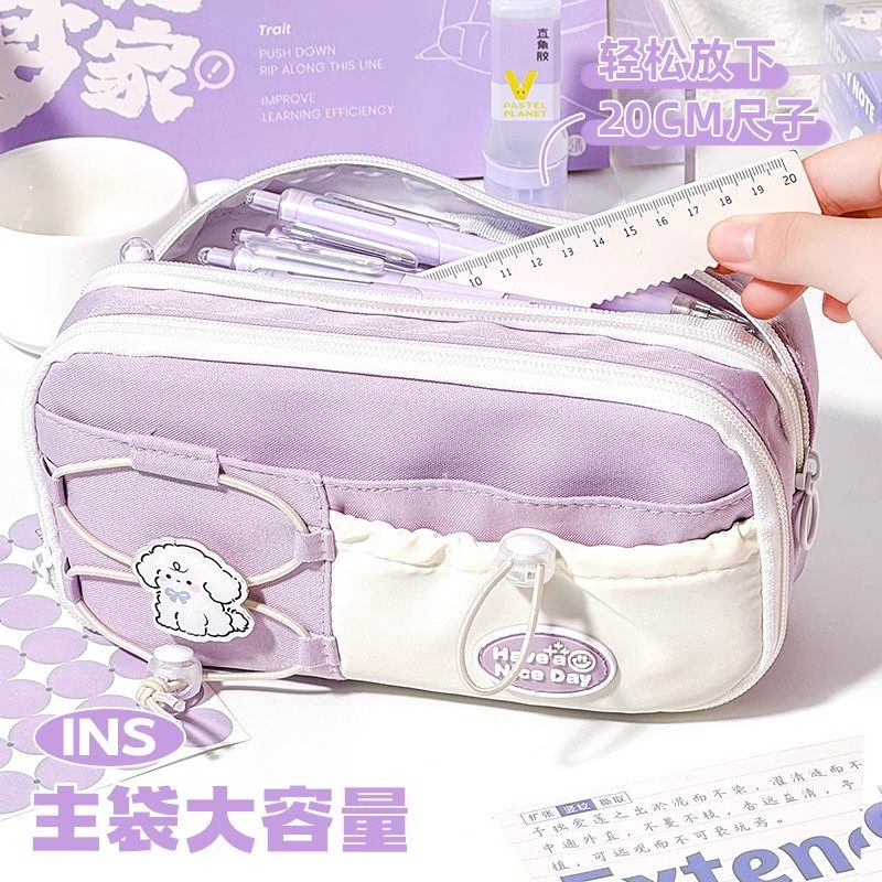 📚 抽绳简约笔袋高颜值ins风小学生文具盒大容量初中女生2025新款铅笔盒儿童男孩款设计感小众男生文具袋