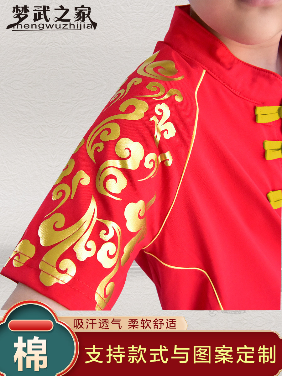 📚 儿童武术训练服中国风专业练功套装夏季纯棉短袖弹力武术服定制