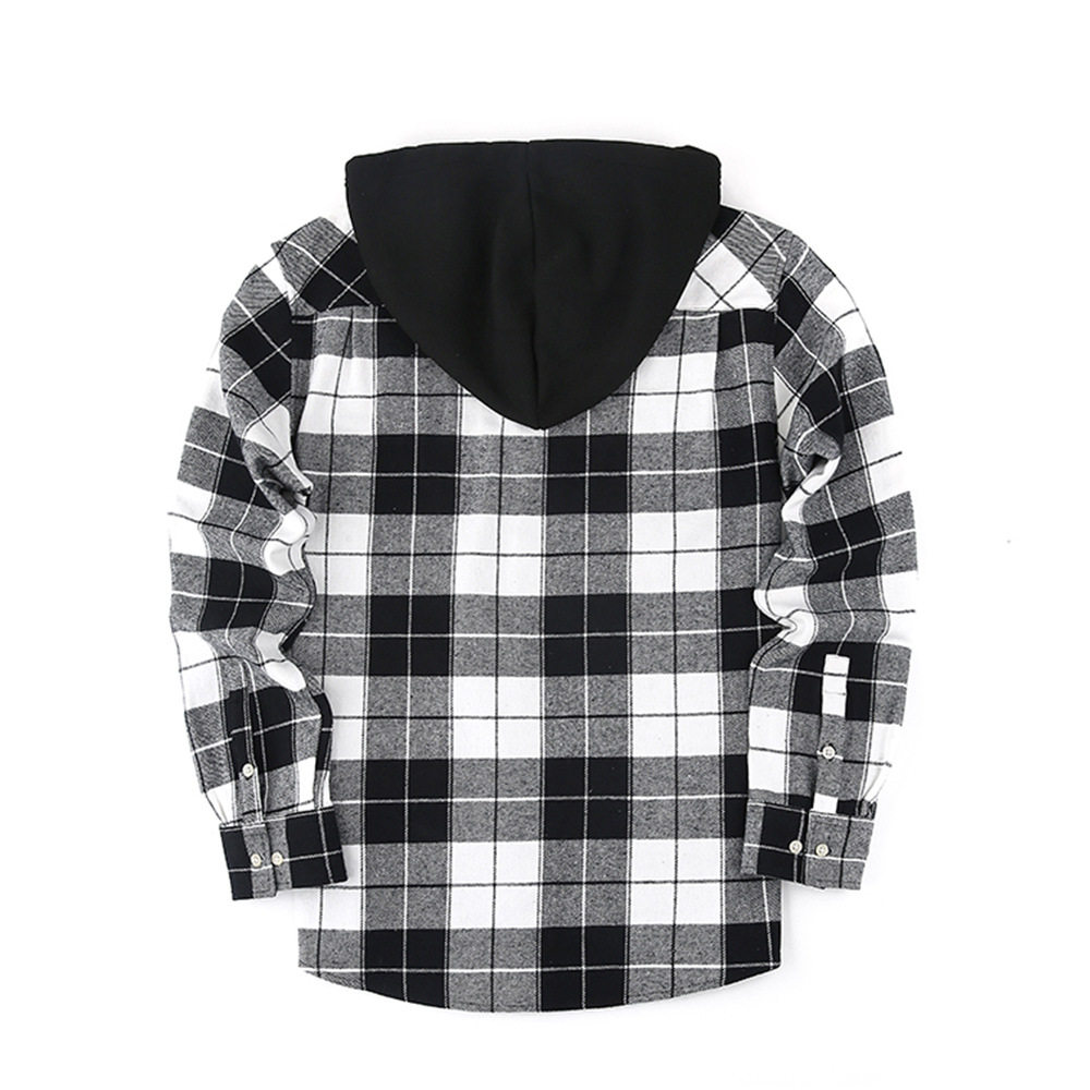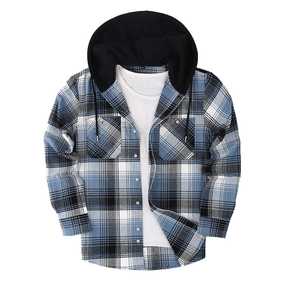 📚 Spring Autumn Flannel Men Shirt LongSleeve Casual Hood Plaid