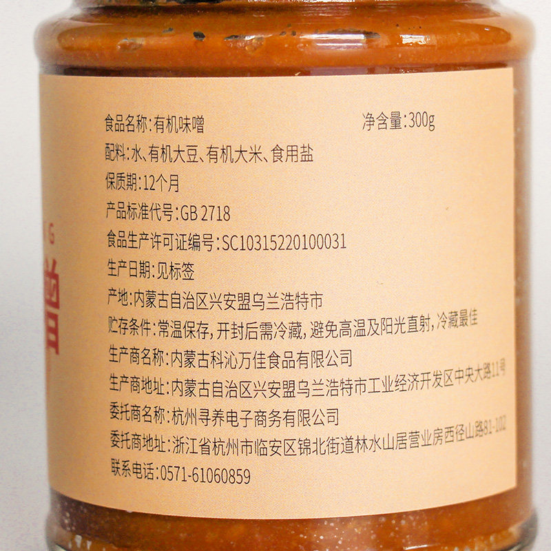 📚 寻养生活有机味噌纯素汤酱类调料300g无小麦正宗白味增提鲜味精