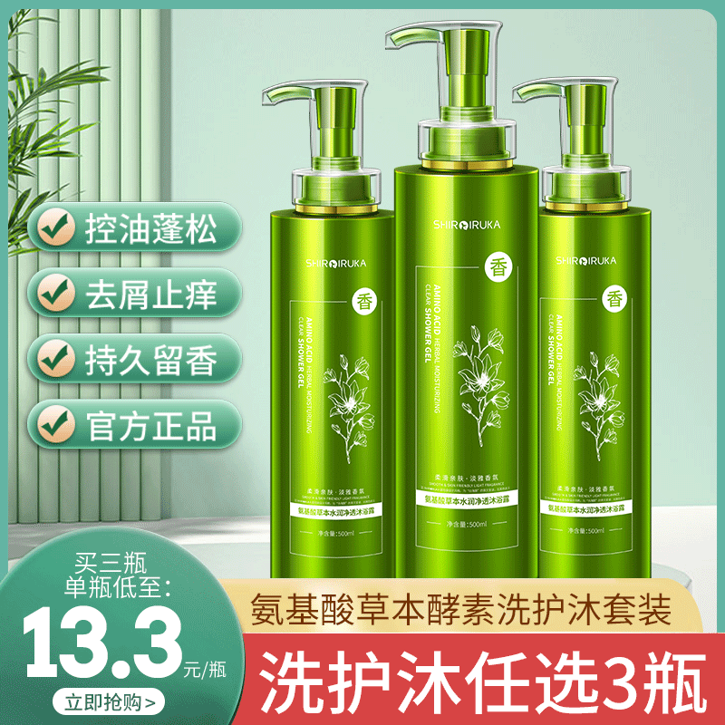 📚 2瓶【官方正品】氨基酸草本去屑控油蓬松洗发水柔顺白海豚洗护套