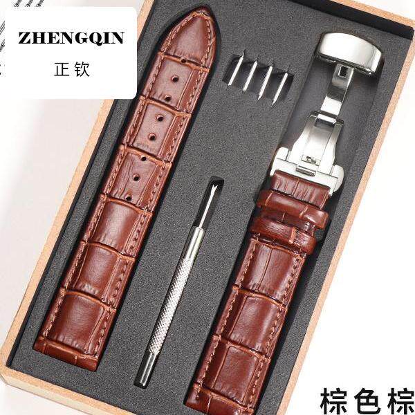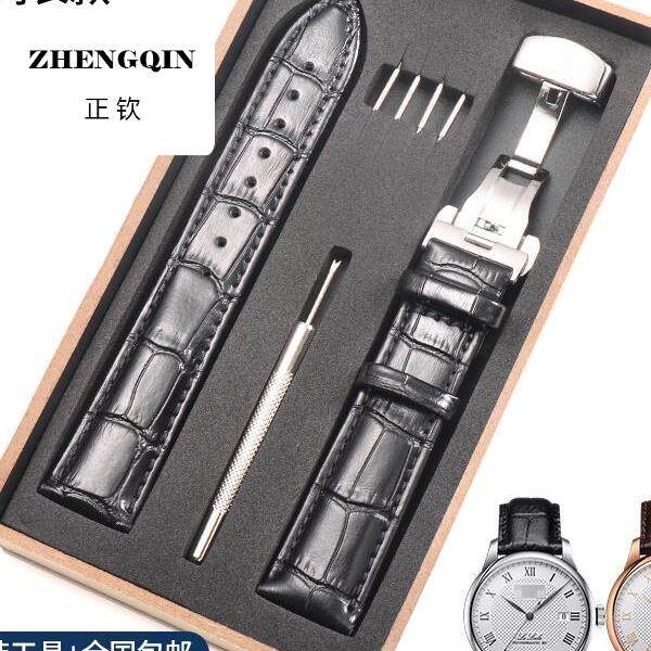 📚 头层牛皮手表带精钢双按蝴蝶扣适用浪琴康卡斯名匠月相瑰丽男表带