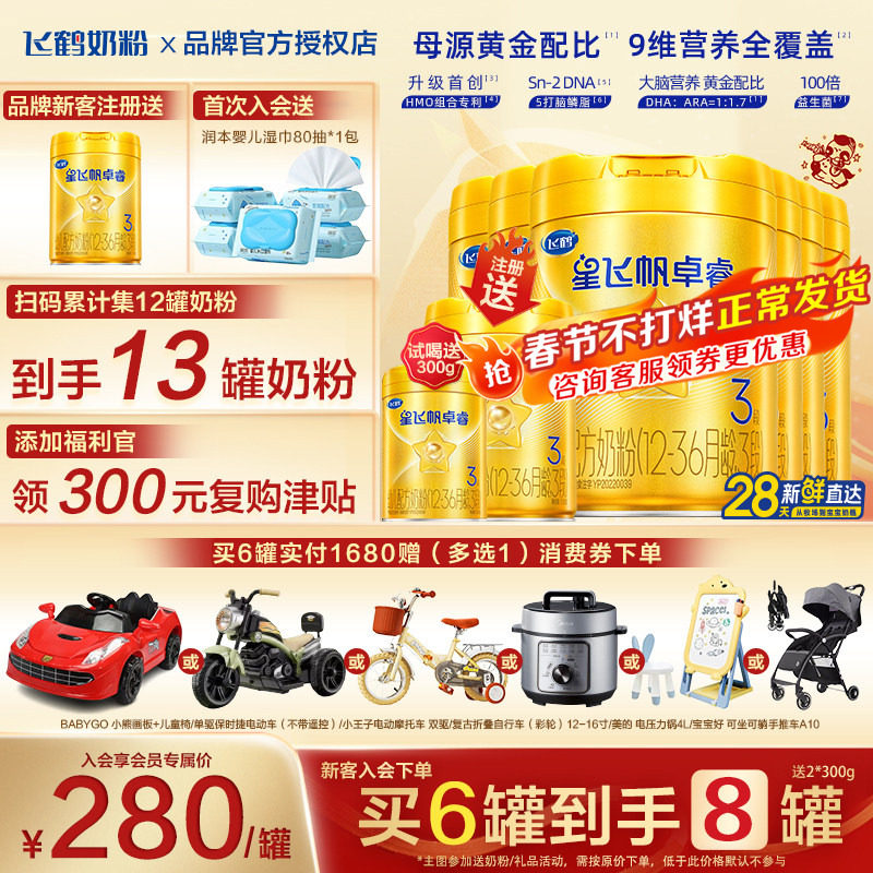 📚 飞鹤3段奶粉星飞帆卓睿三段婴儿牛奶粉750g6罐正品含HMO乳铁蛋白