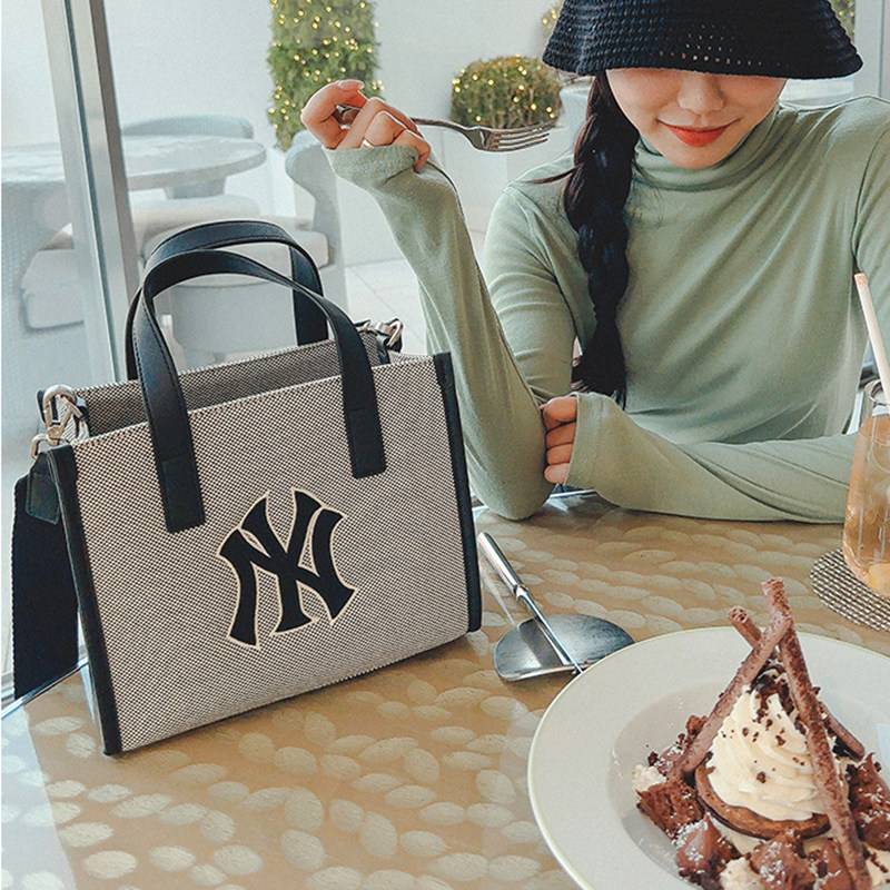 📚 24新款MLB情侣斜挎包男女NY大标手提拎包托特包单肩包3AORS062N