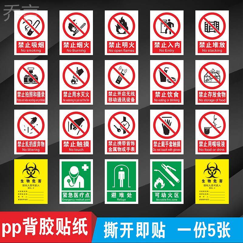 📚 实验室安全标识全套生物危害一级二级生物安全化学实验室BSL12警示提示牌当心飞溅灼伤中毒腐蚀标志贴纸定制